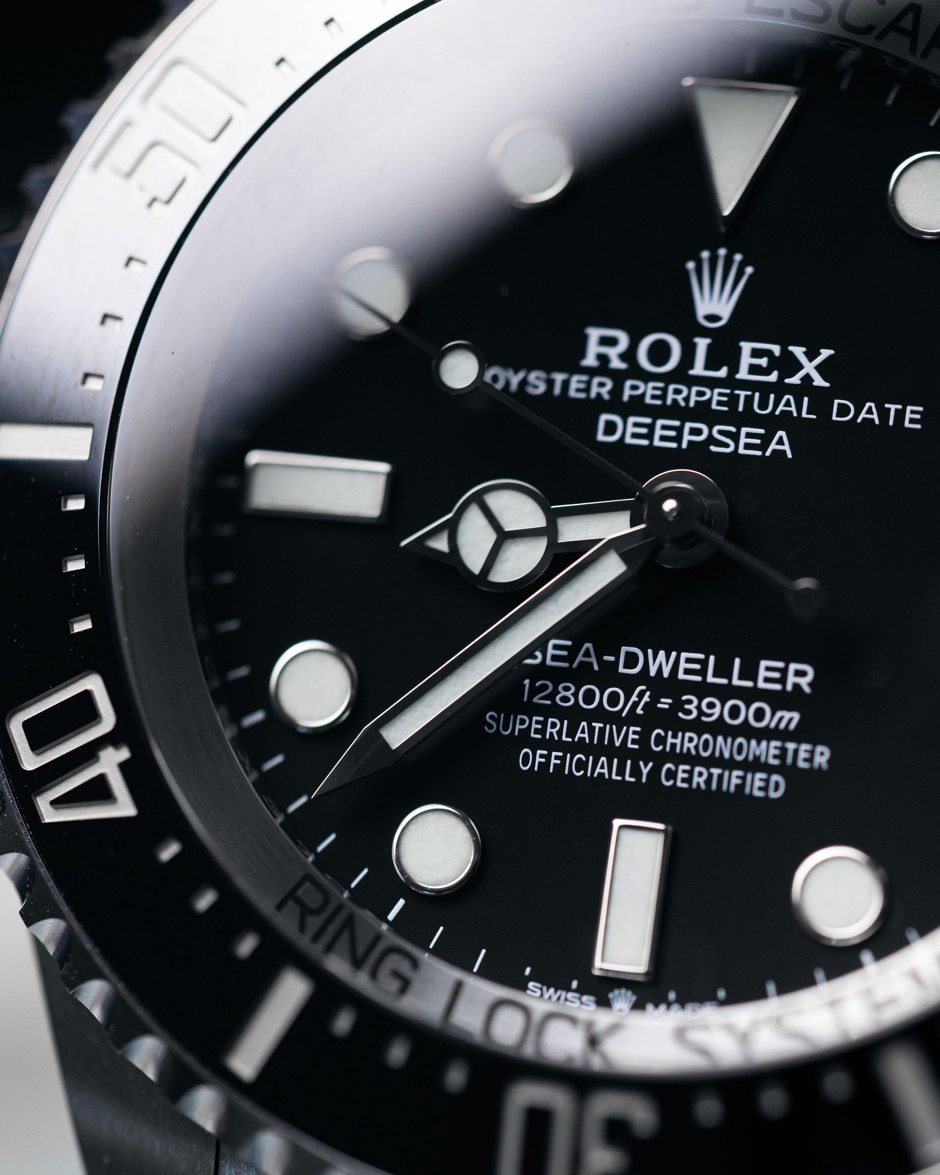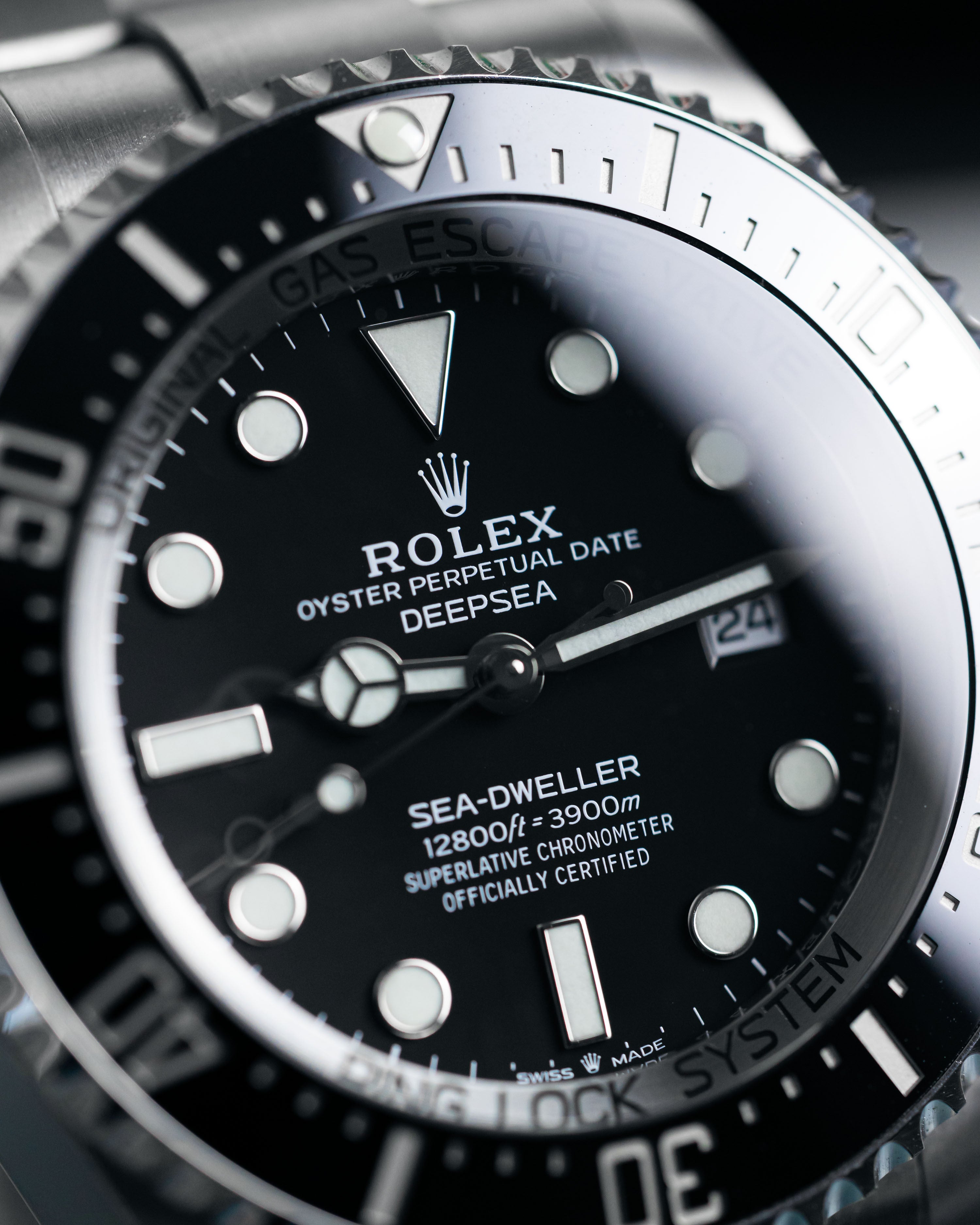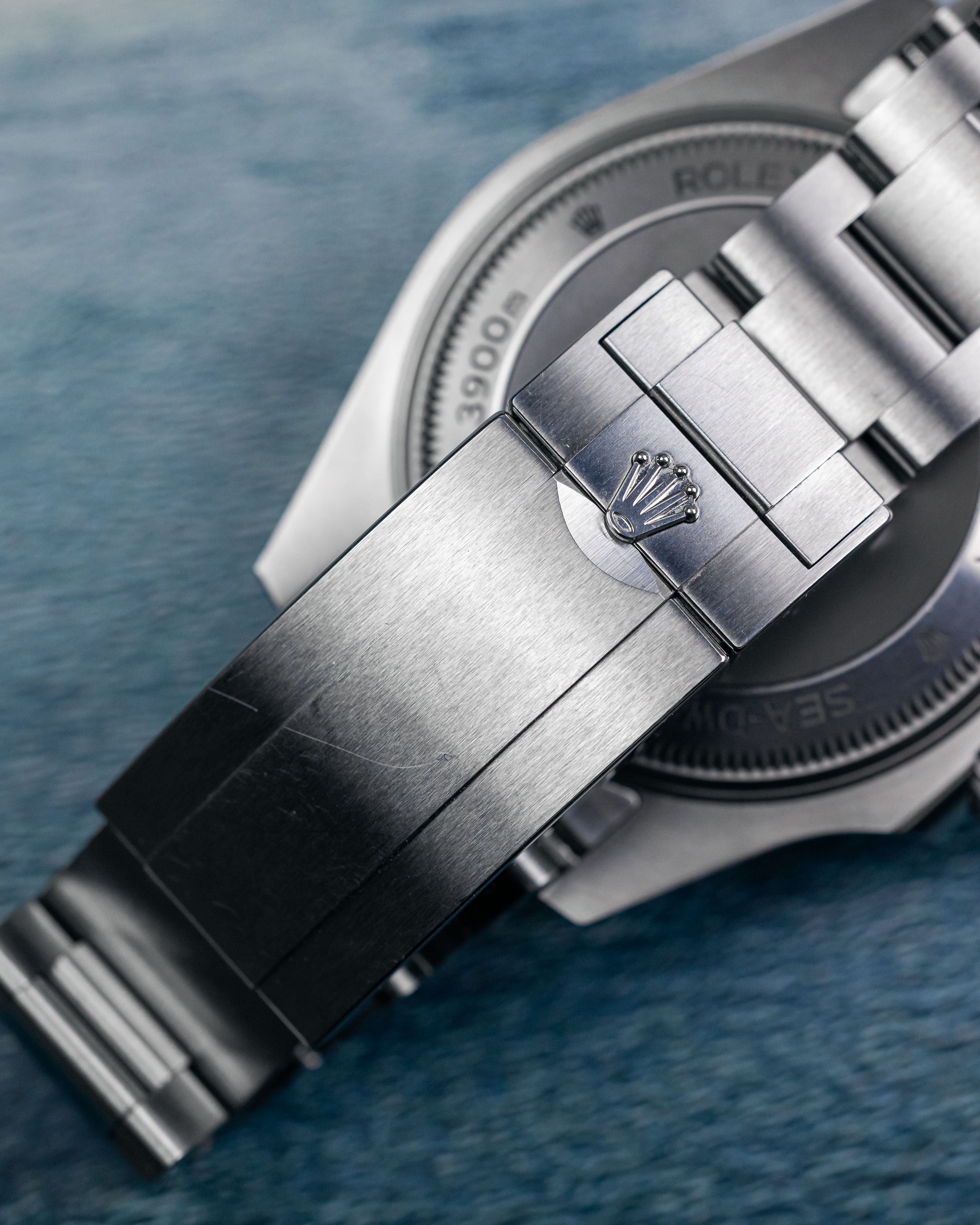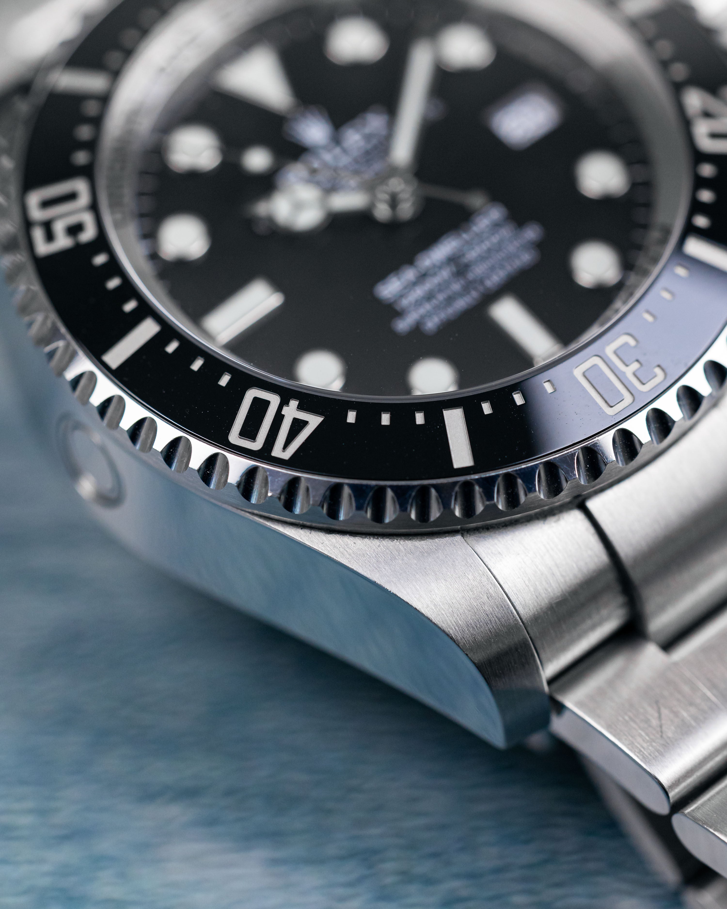 With a depth rating or 3900m, Rolex really pushed the boundaries of what was possible with a wrist watch when they launched the Deepsea. This particular example has the desirable wider bracelet.
