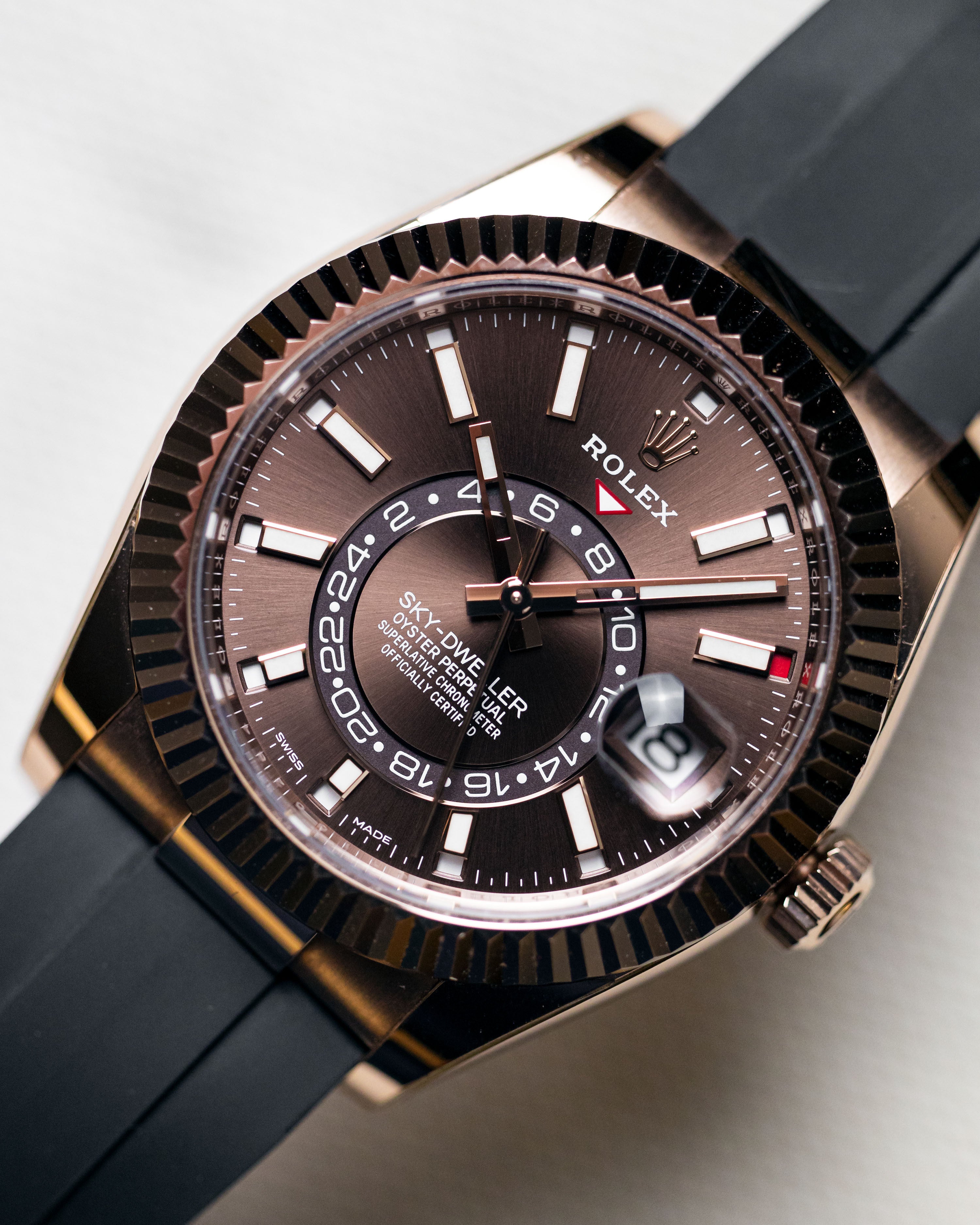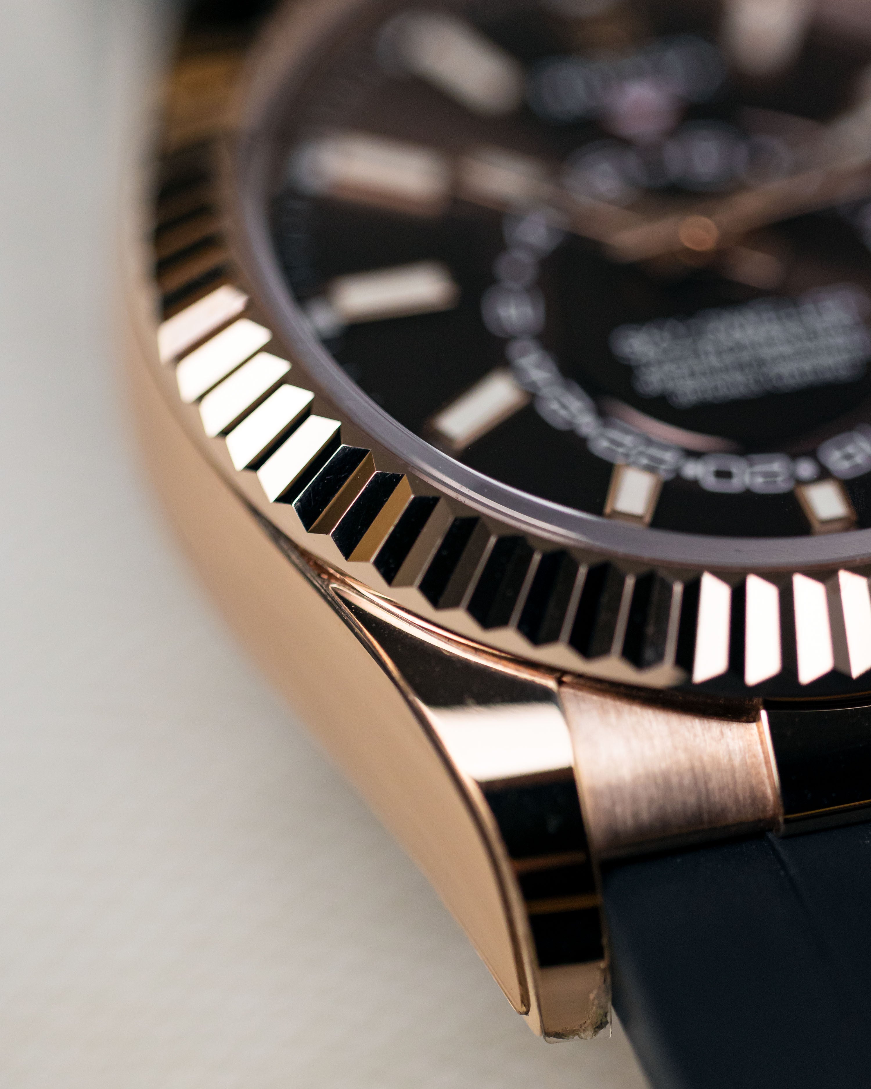 A casual wearing variation of Rolex's most complicated watch. Featuring an annual calendar feature and GMT, the fluted bezel is eye-catching and the oysterflex strap makes the overall feel of the watch more casual.