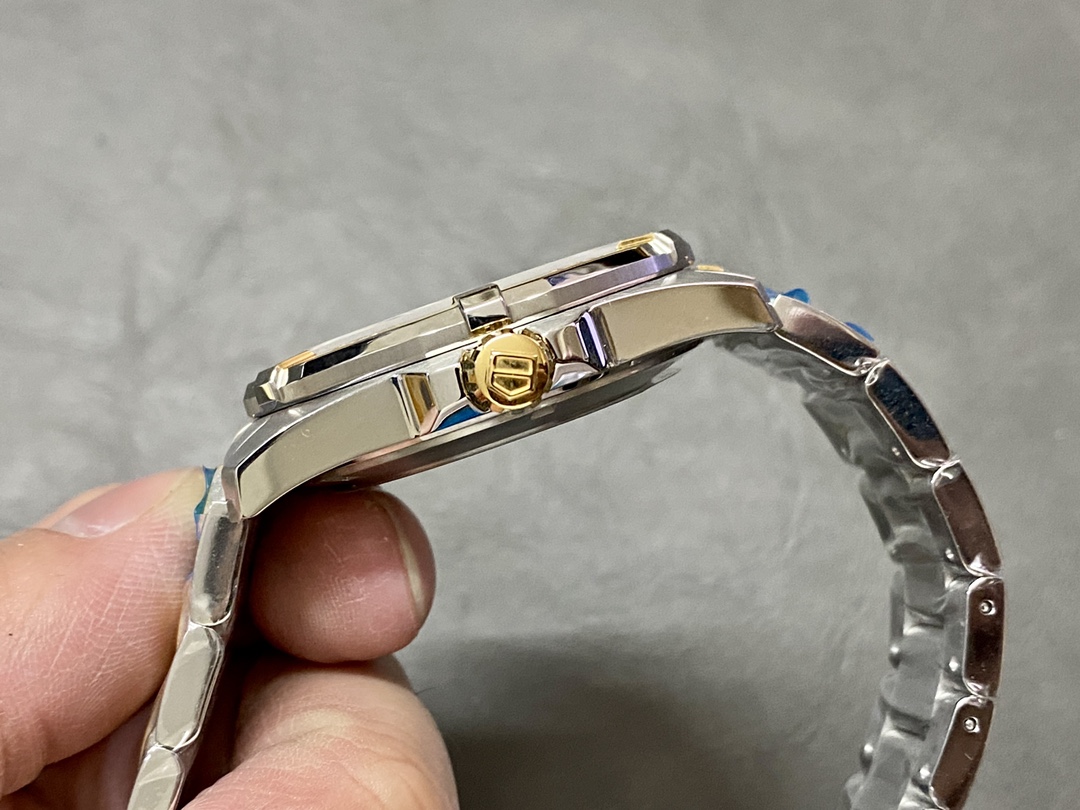 | Bracelet Material: | Brushed Stainless Steel with Polished Yellow Gold Bracelet |
