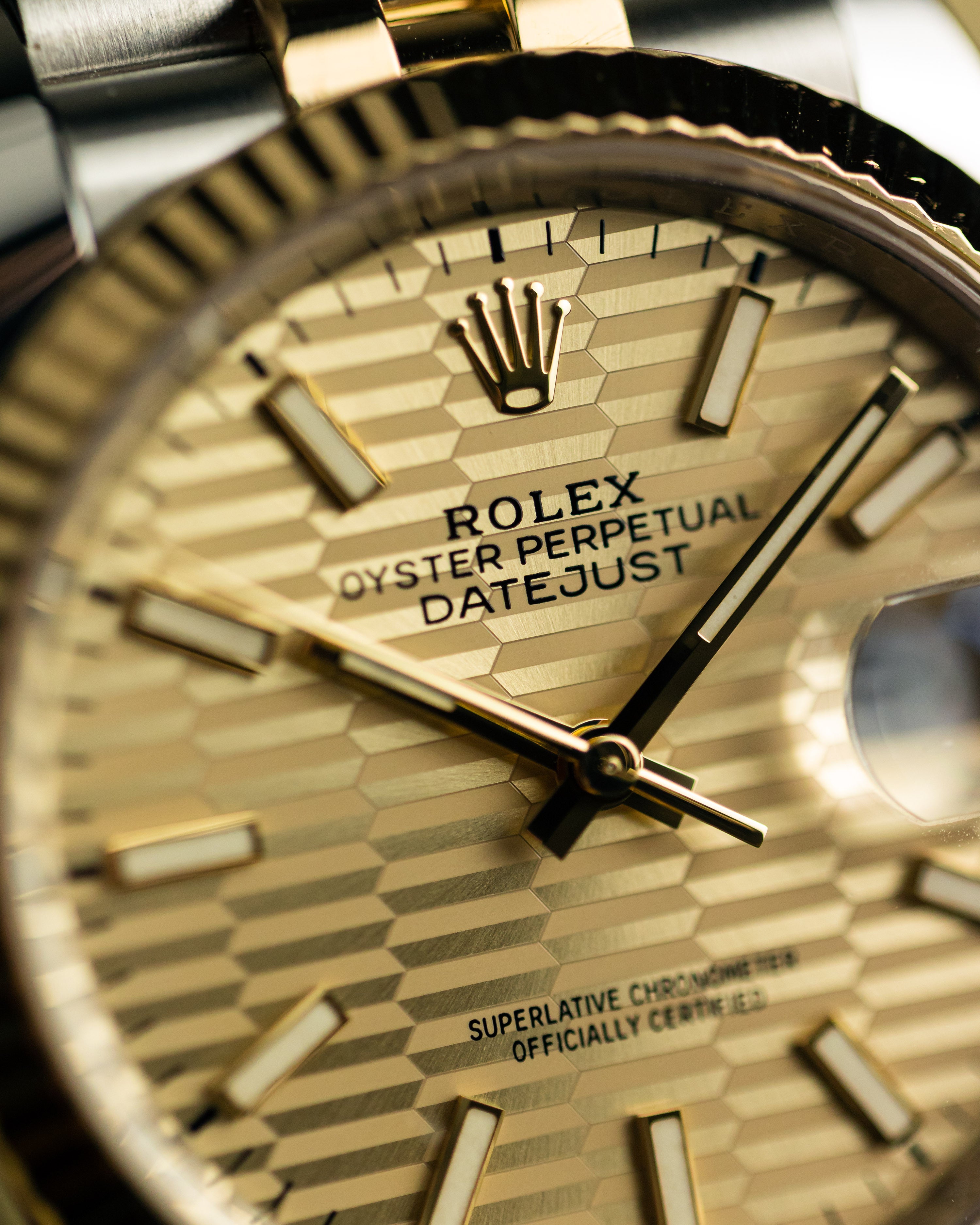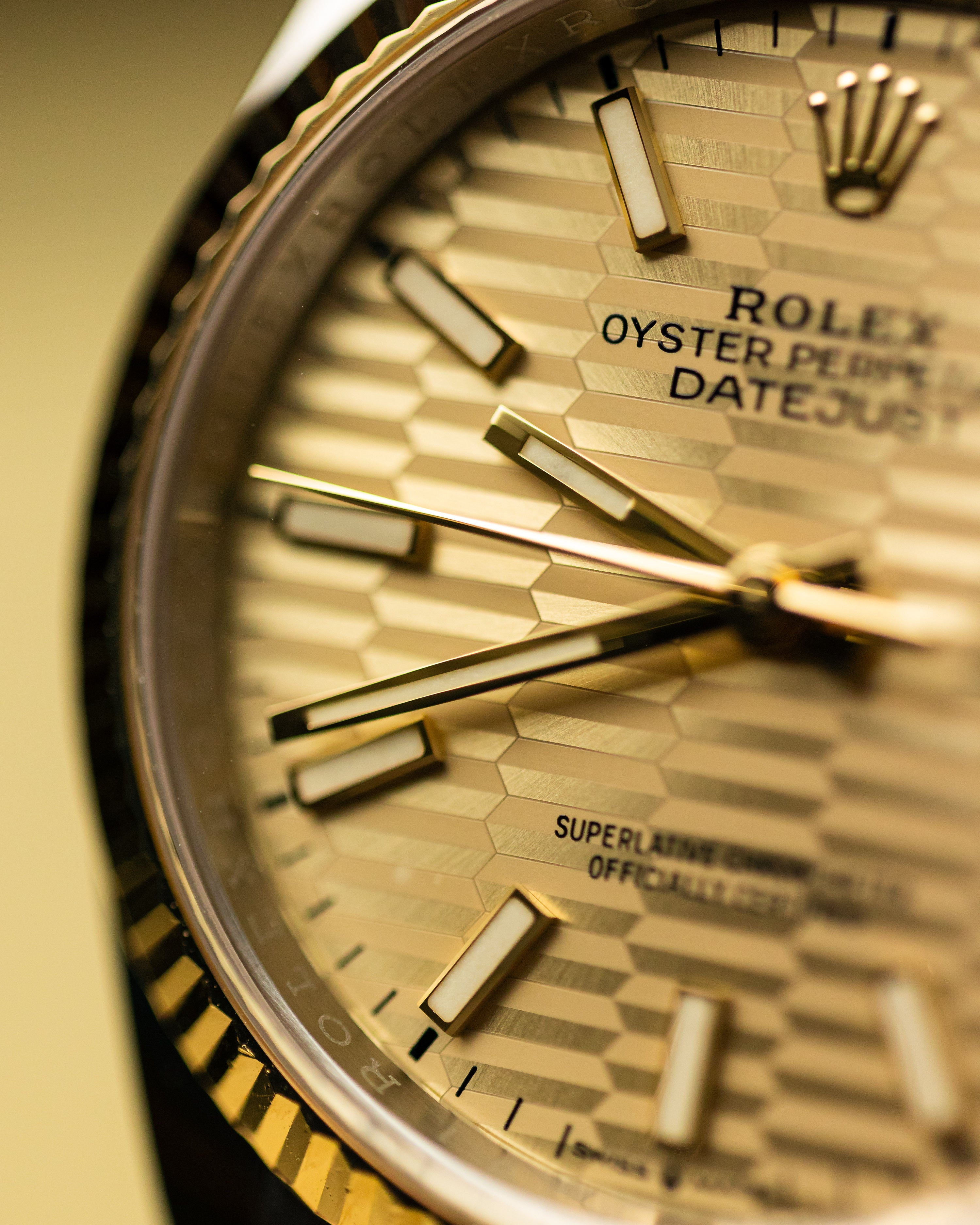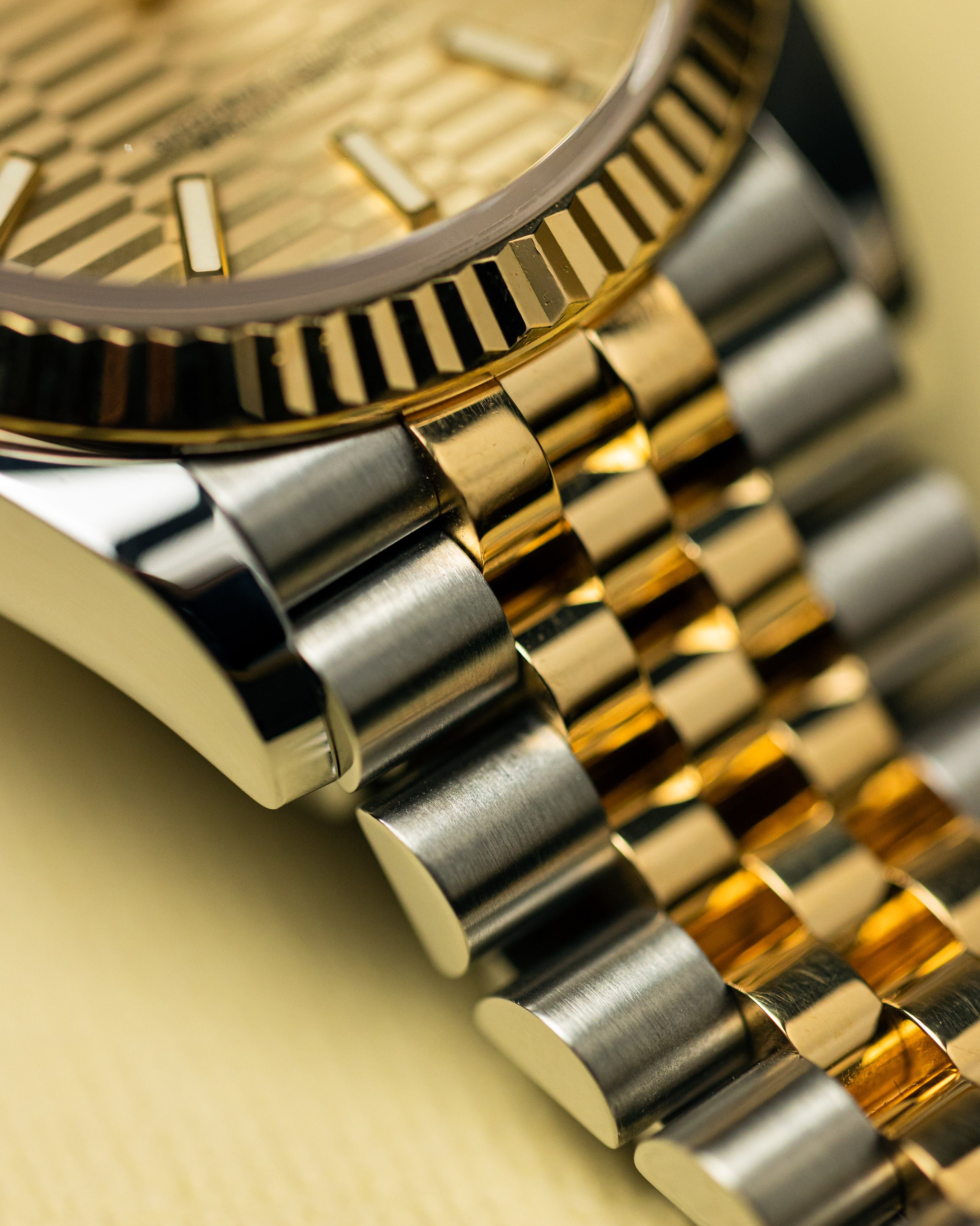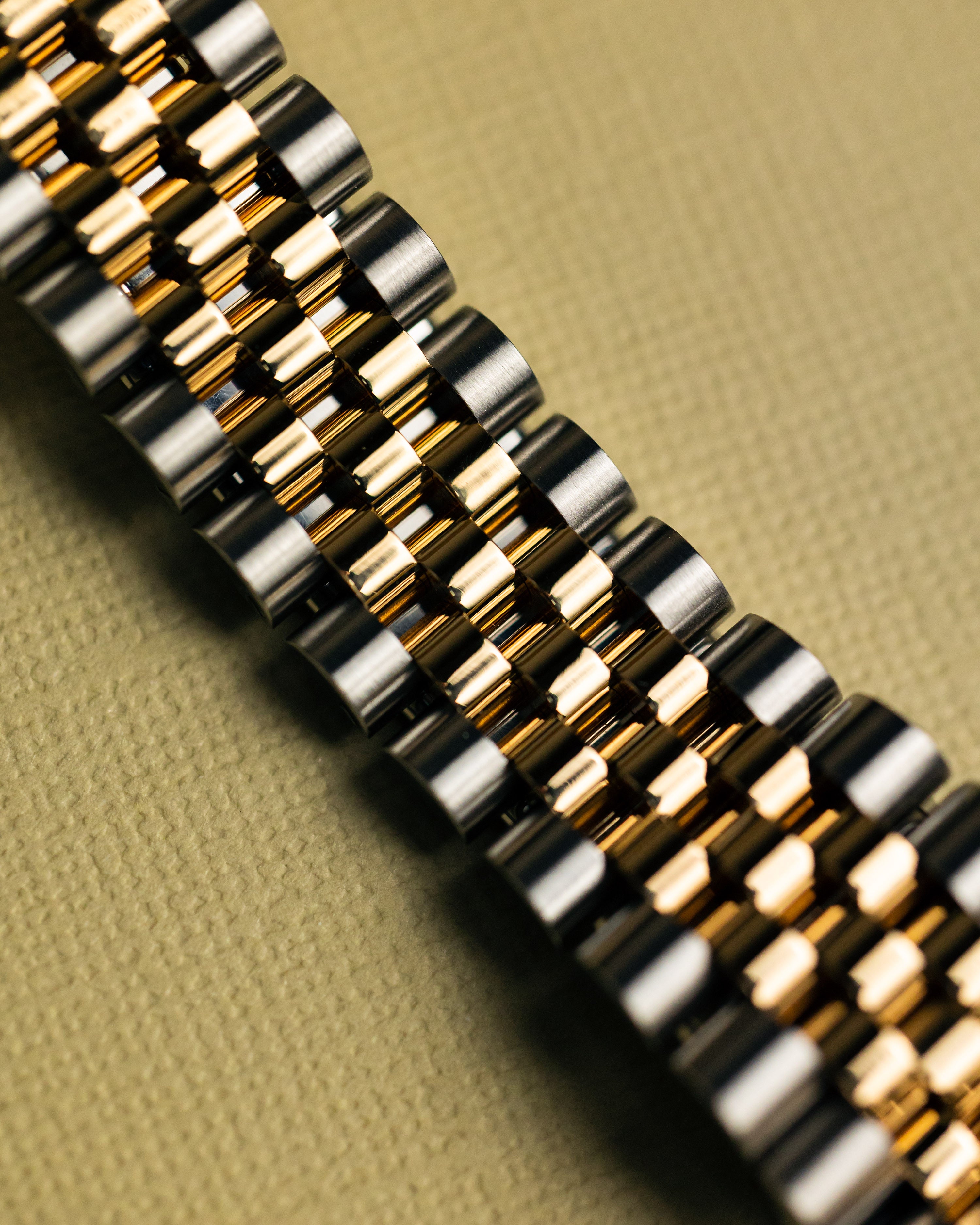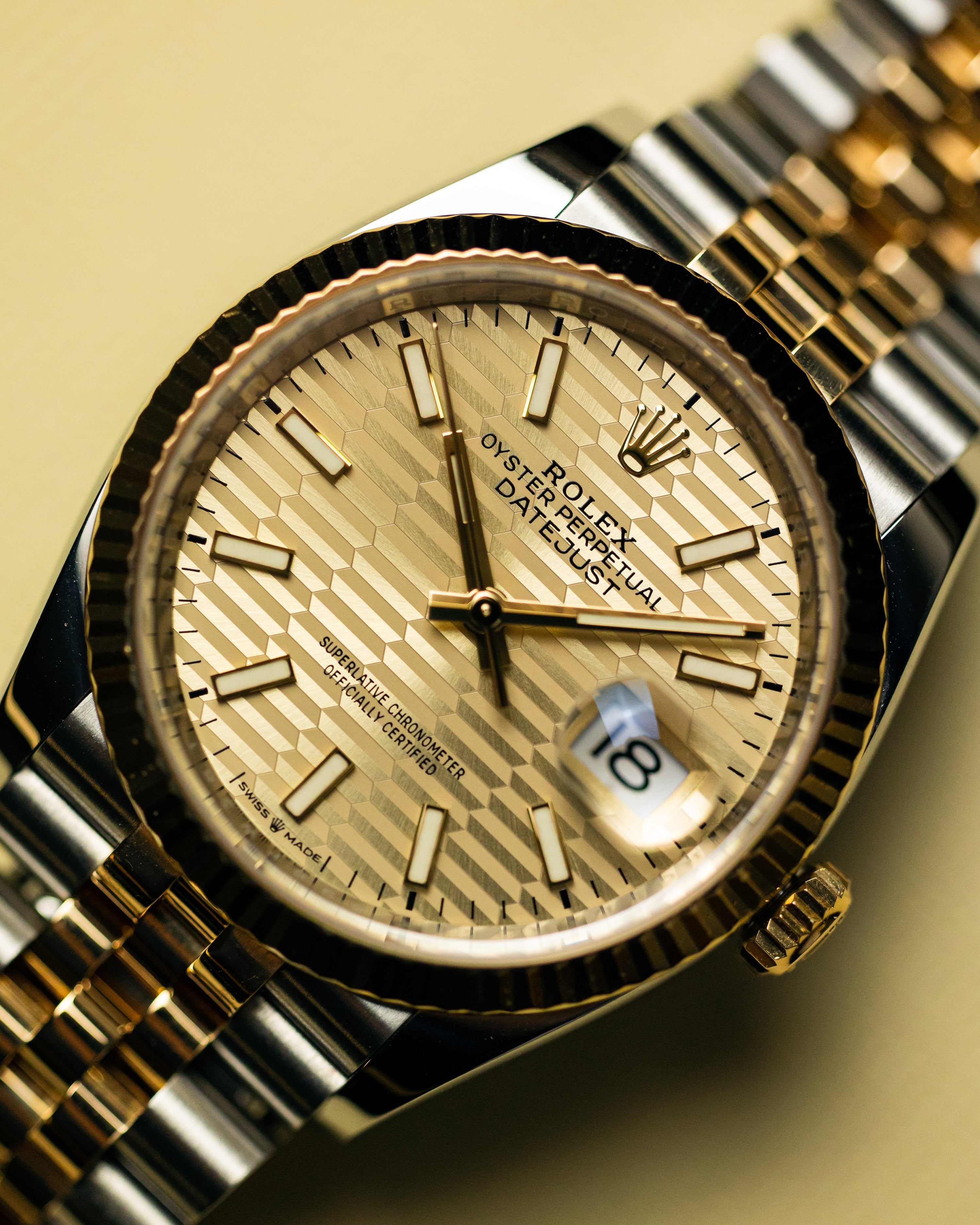 Definitely one of the most interesting Datejust dials of recent times, it provides a sense of depth and three-dimensional quality to the dial. All this with a classic combination of yellow gold and steel, which might seem too busy on paper but just works in person.