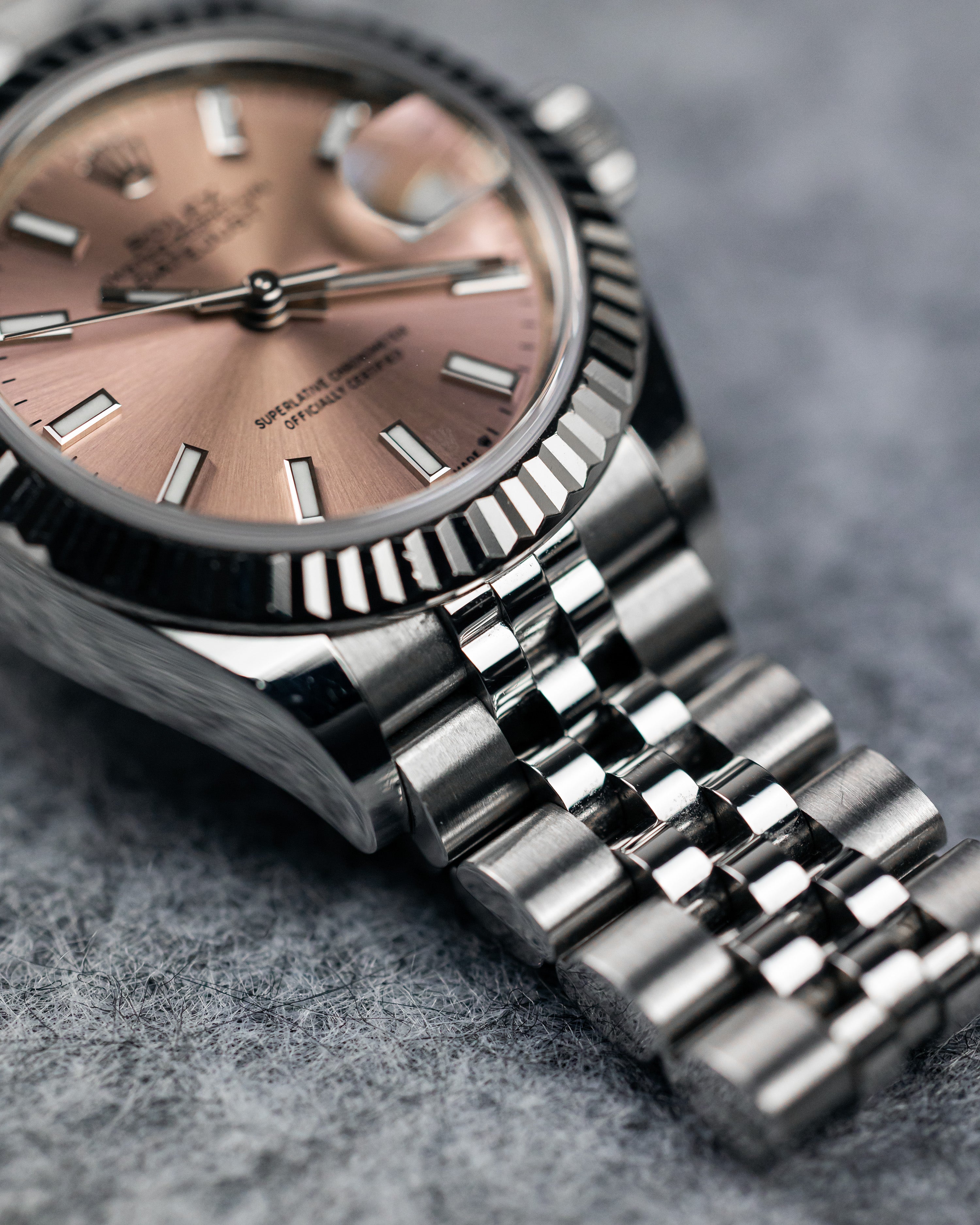 - Polished with Brushed 904L Oystersteel Stainless Steel Case & Jubilee Bracelet