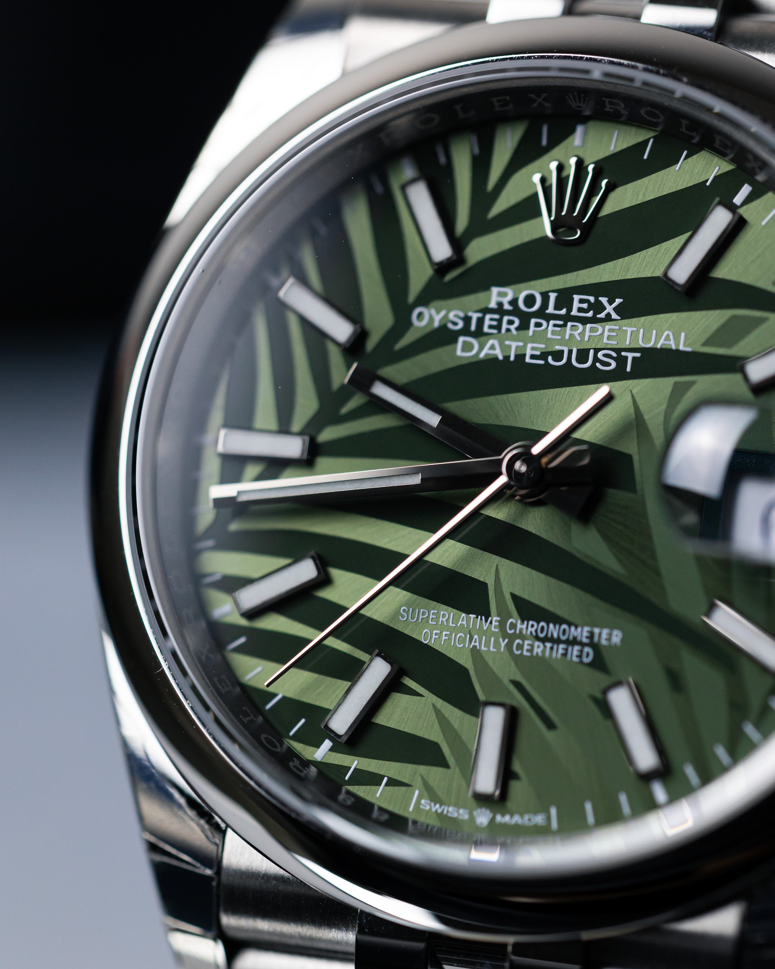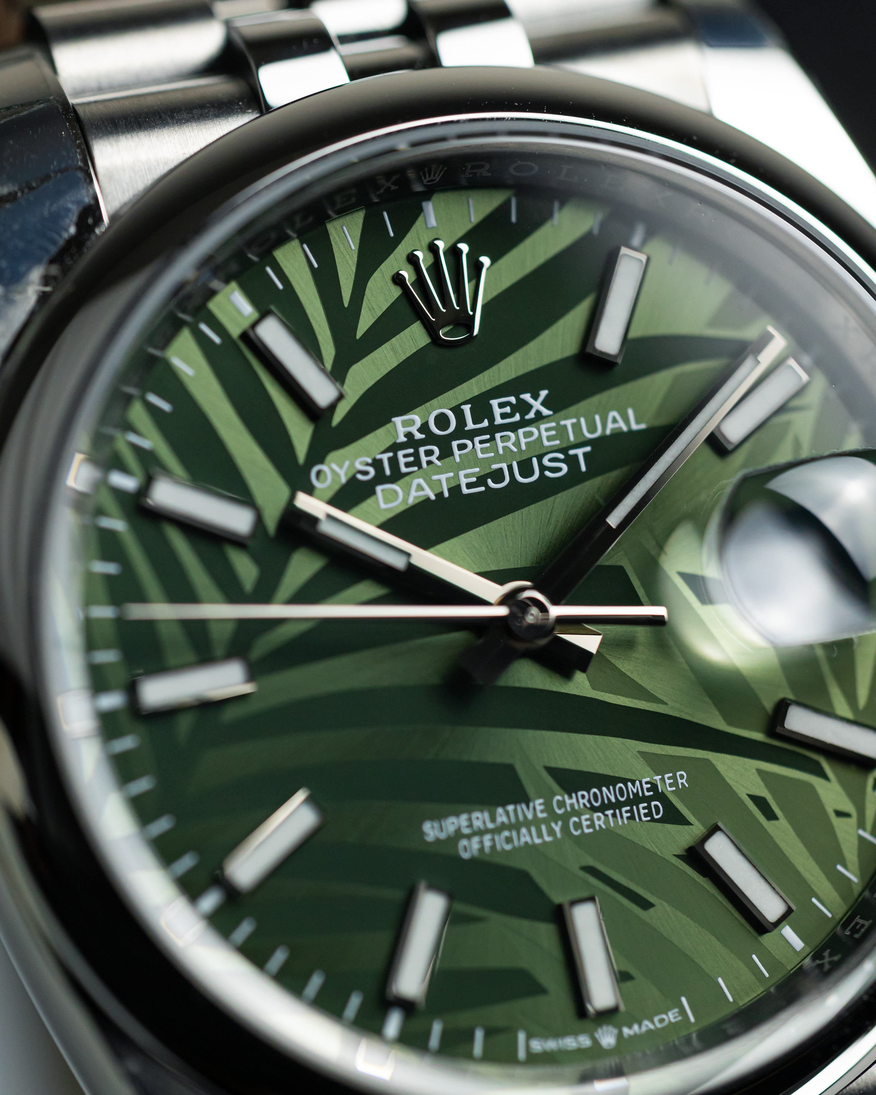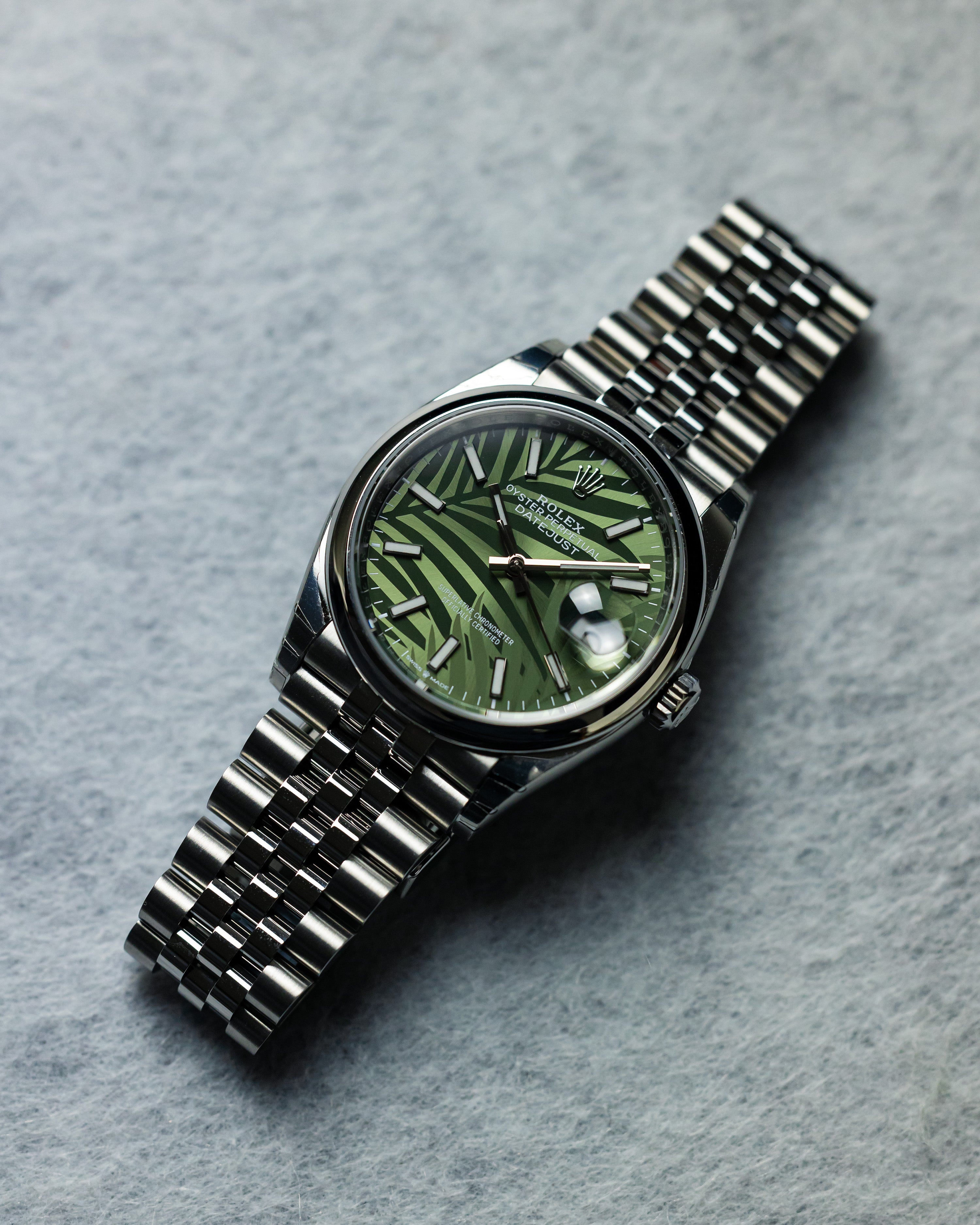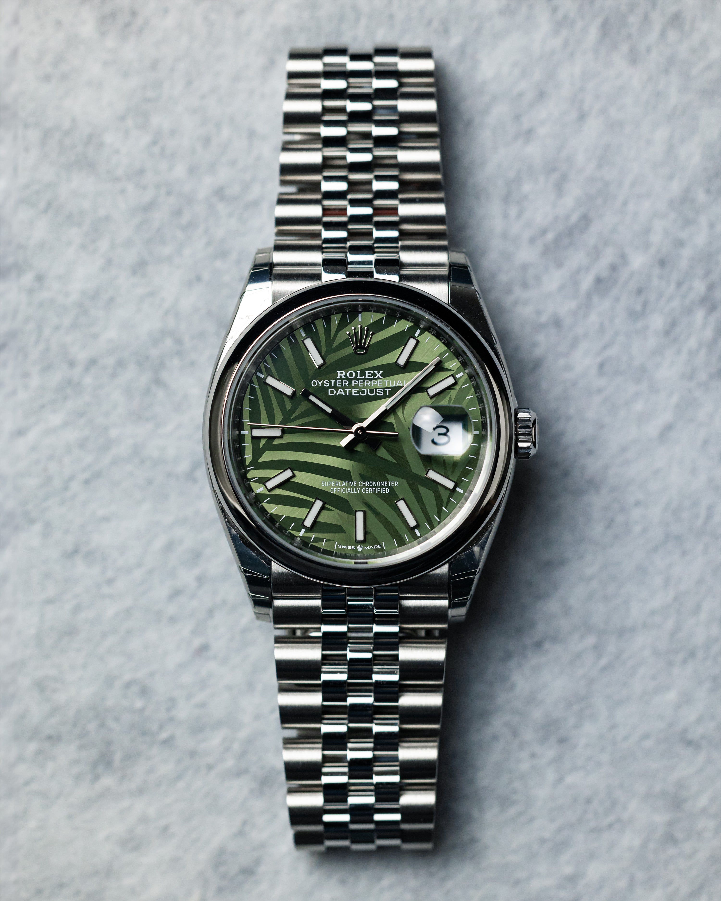 • Rolex Datejust 36 Steel & White Gold Olive Green Palm-Motif Dial Women's Watch M126234-0047