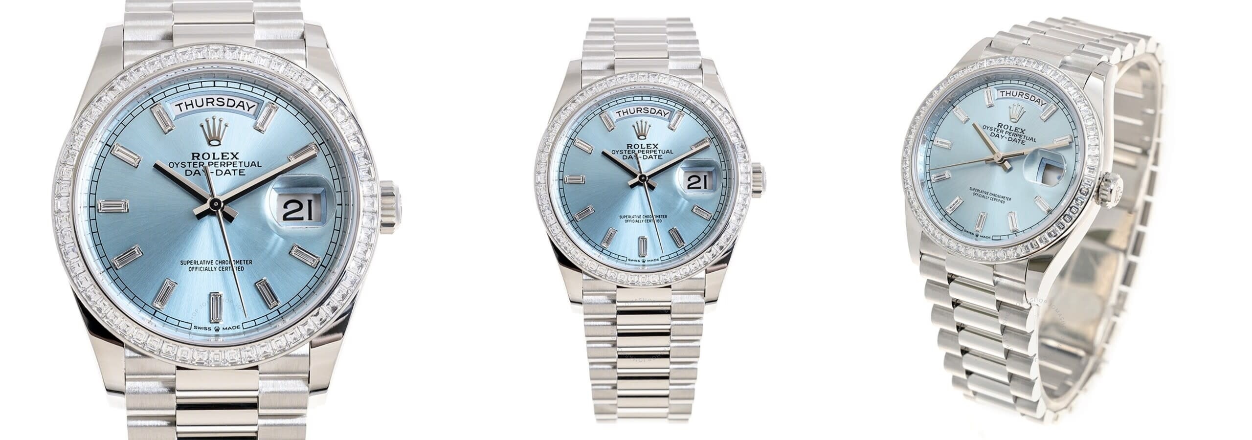 Rolex Day-Date Platinum 228396TBR001 Ice Blue Baguette Index Replica