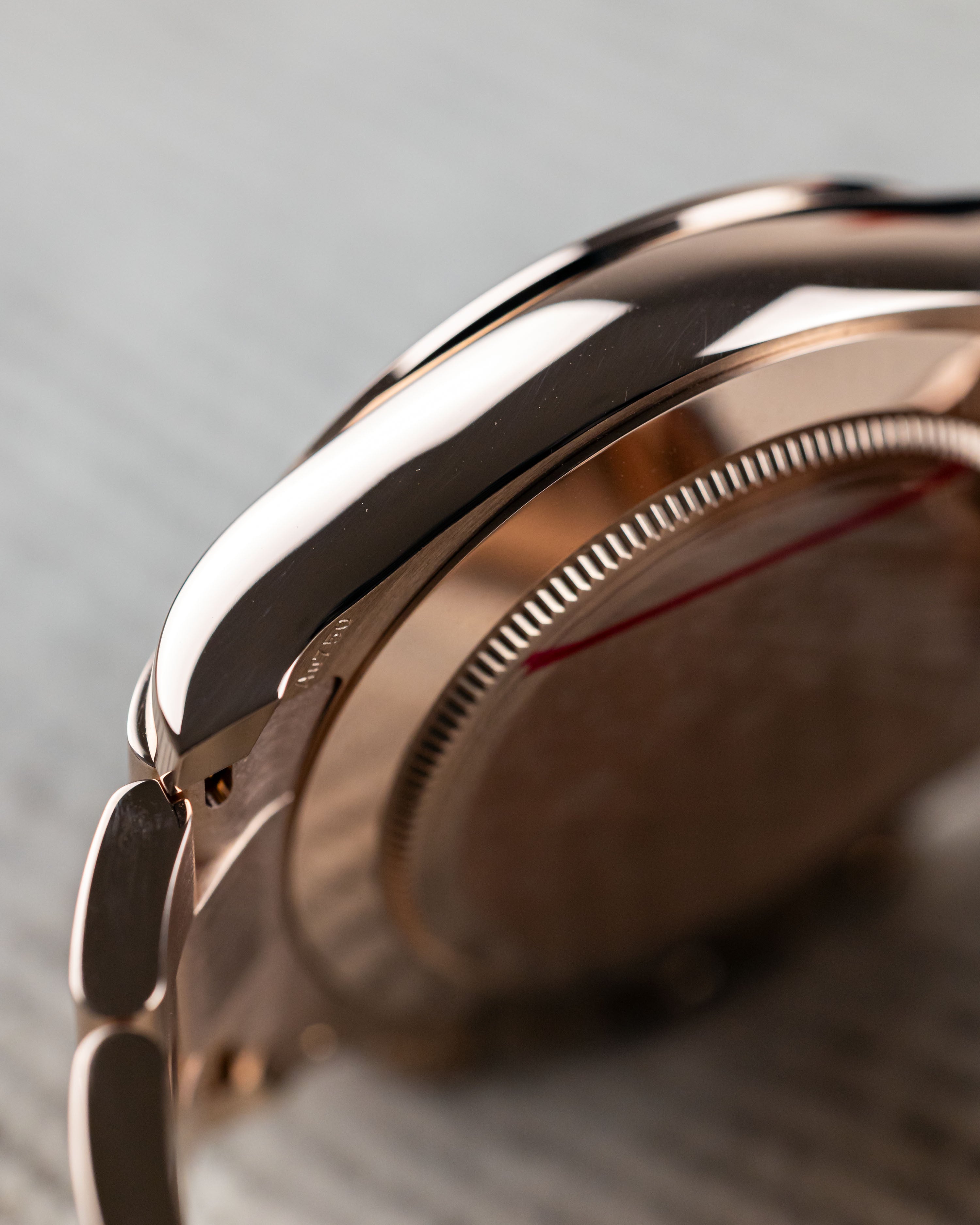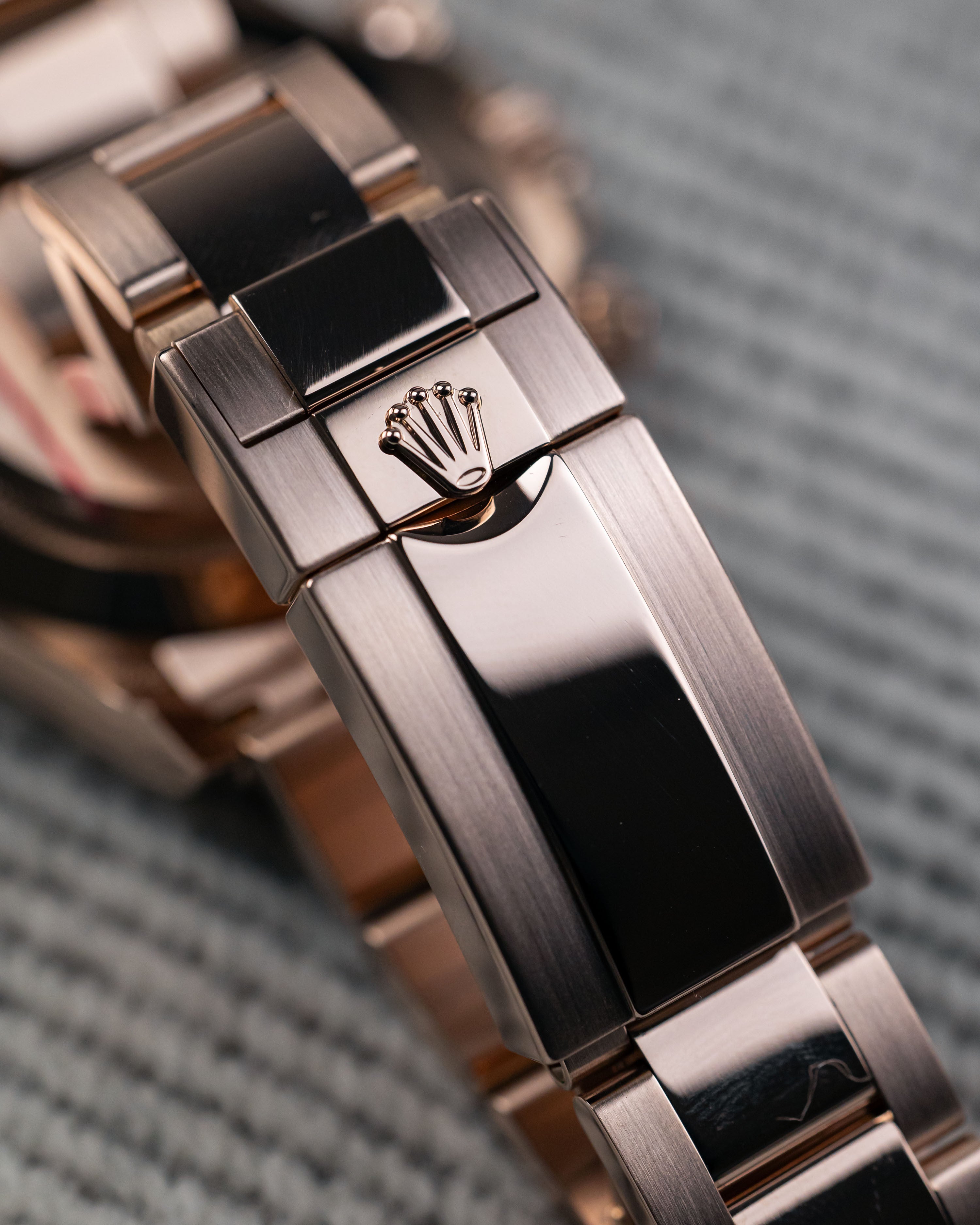 - Brushed with Polished Solid 18k Everose Gold Oyster Bracelet