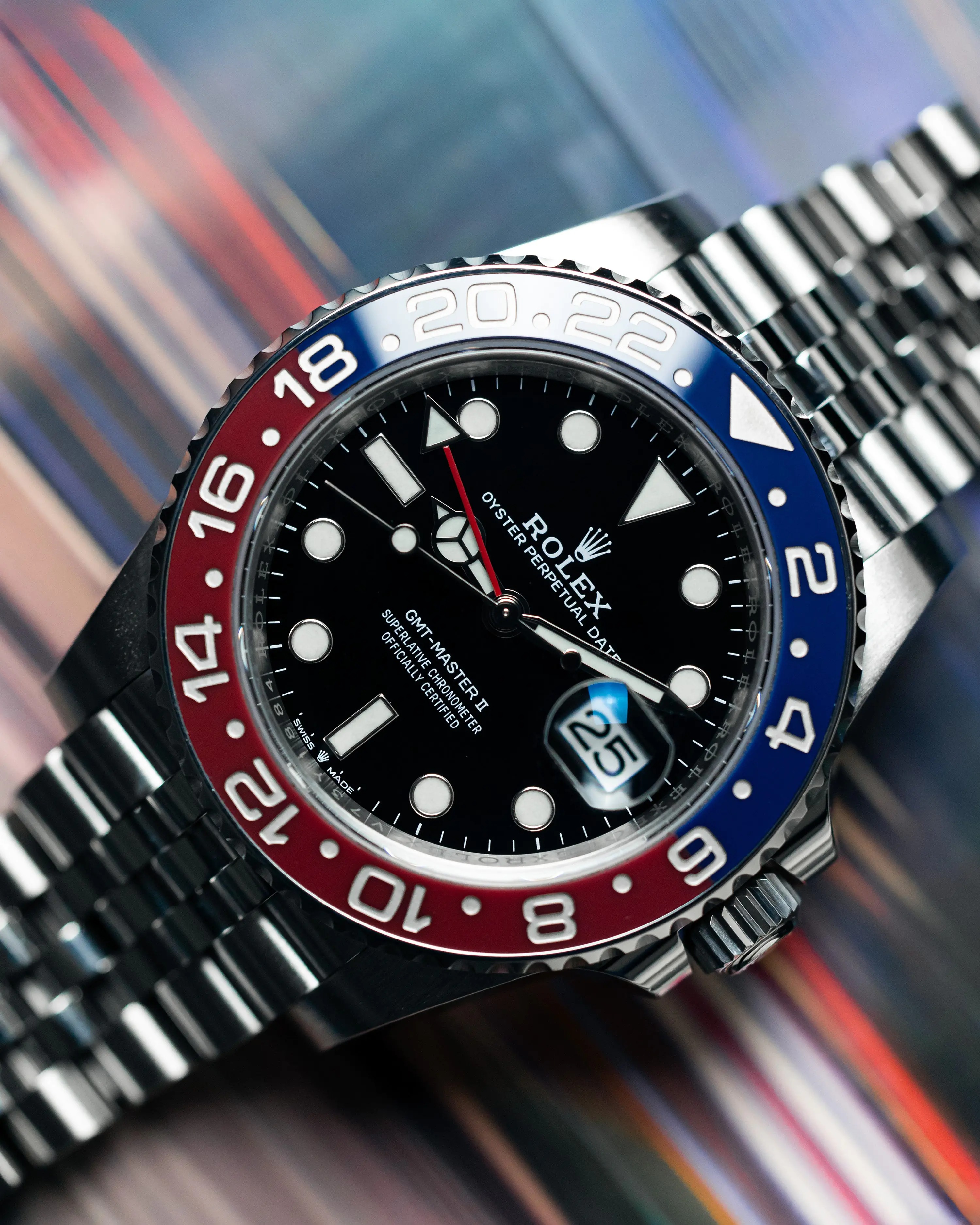 Many argue that no other Rolex is more iconic than the stainless steel and Pepsi bezel GMT Master.