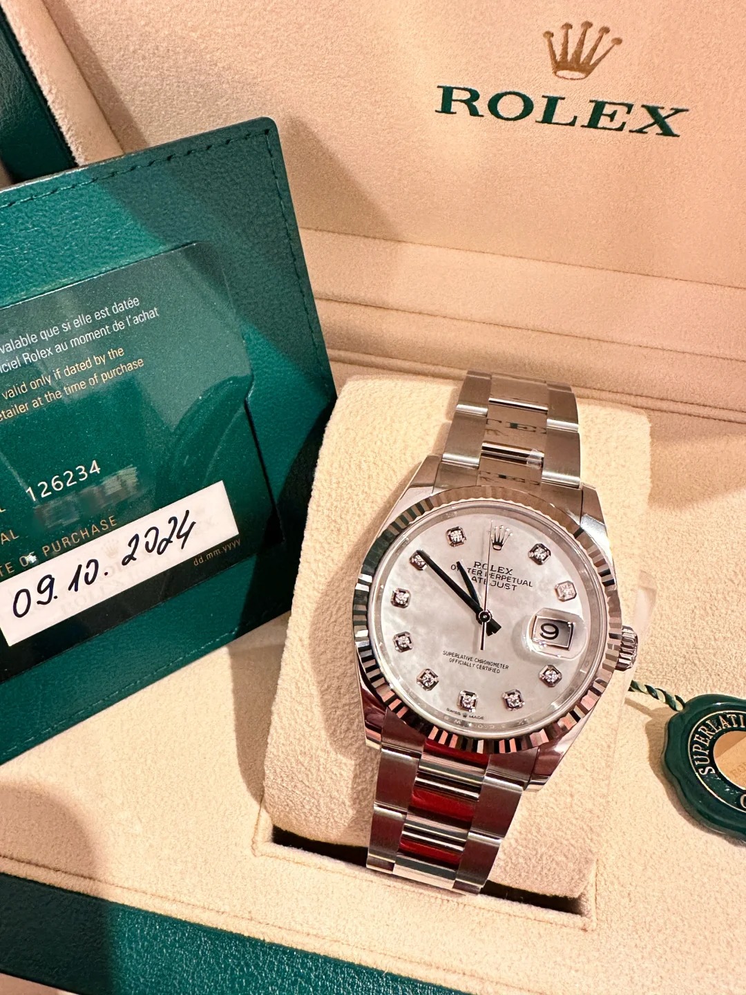 • Rolex Datejust 126334-0019 Stainless Steel Diamond Mother Of Pearl Dial