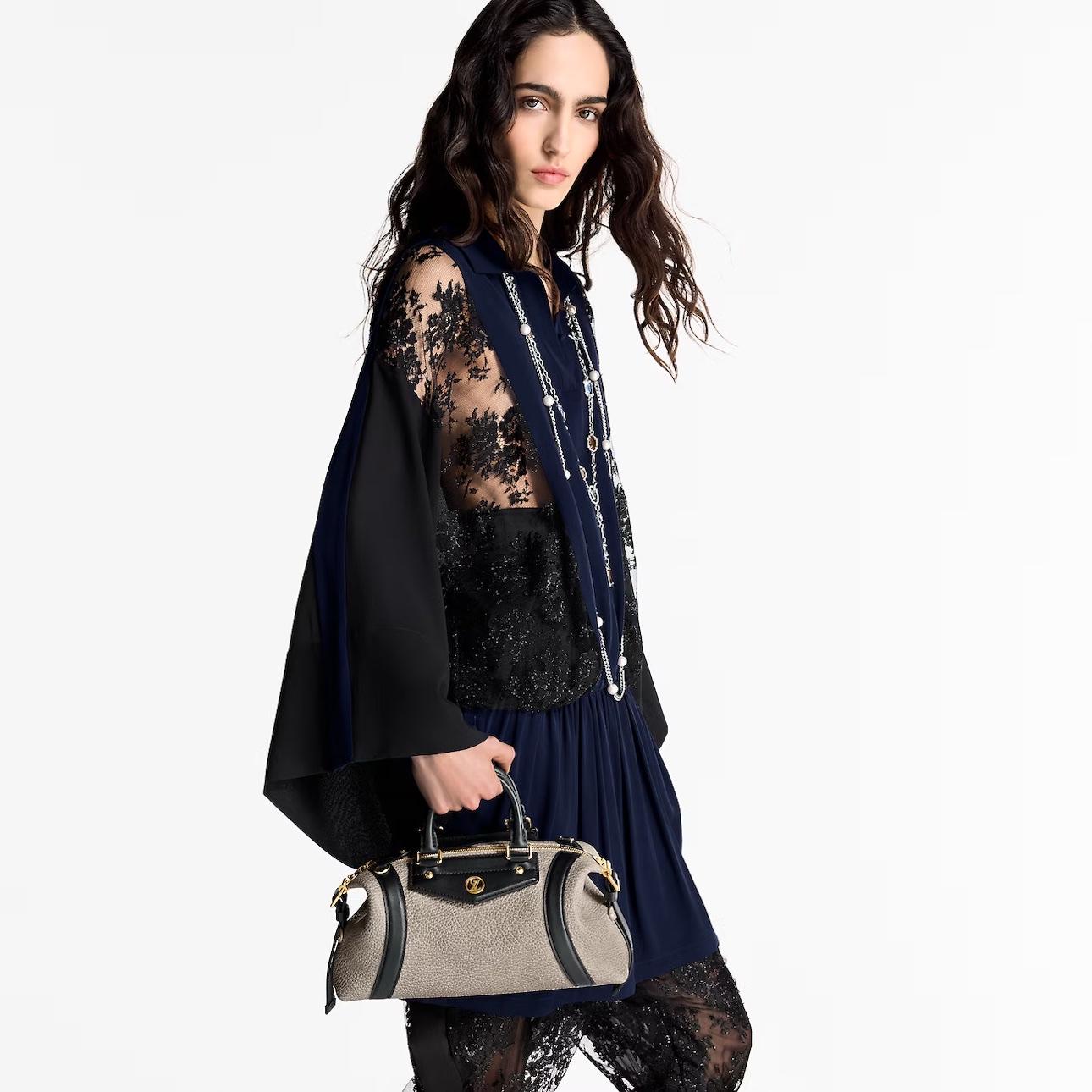 This LV Biker PM debuted on the Spring-Summer 2025 runway as a tribute to the classic biker jacket. It is crafted from the House’s pixel lambskin, which offers a bi-tonal finish and is contrasted with silver-toned hardware and black leather trims. The convertible design is fitted with side straps to expand the shape, and can be worn multiple ways. Use the inside pocket to keep valuables secure. Get used to its comfortable leather strap which enables shoulder and cross body carrying options
