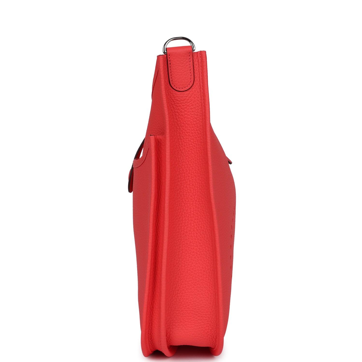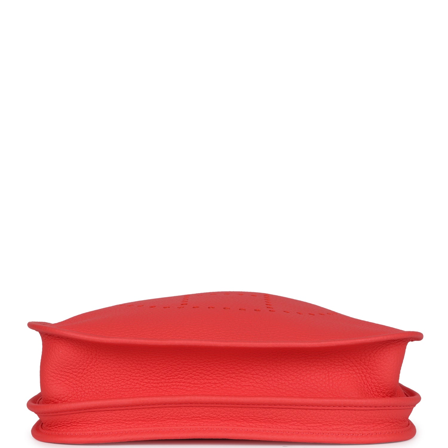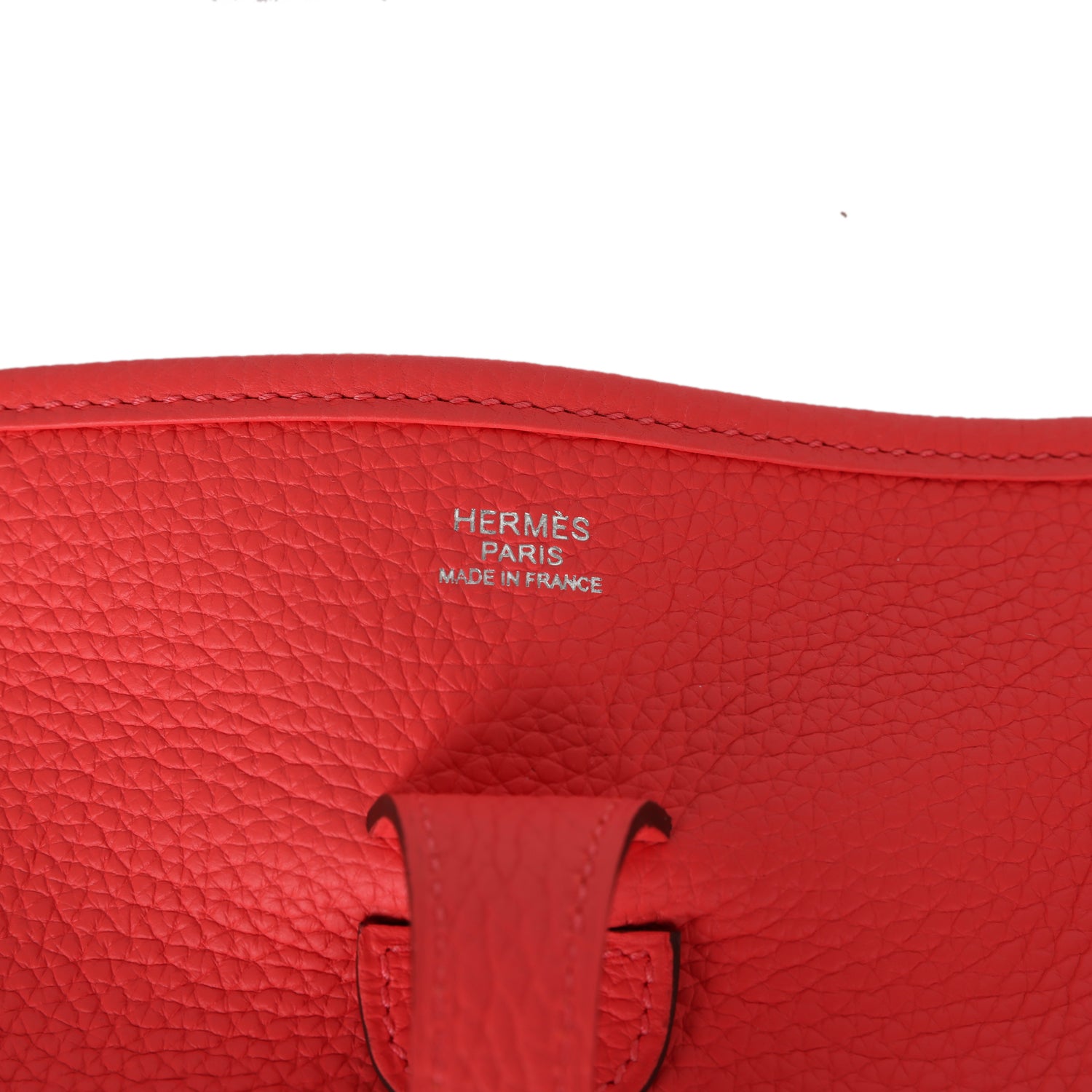 This Evelyne is in Rose Texas clemence leather with palladium hardware, tonal stitching, large perforated H in circle (front), pull tab top snap closure and a removable Rose Texas shoulder/crossbody strap.