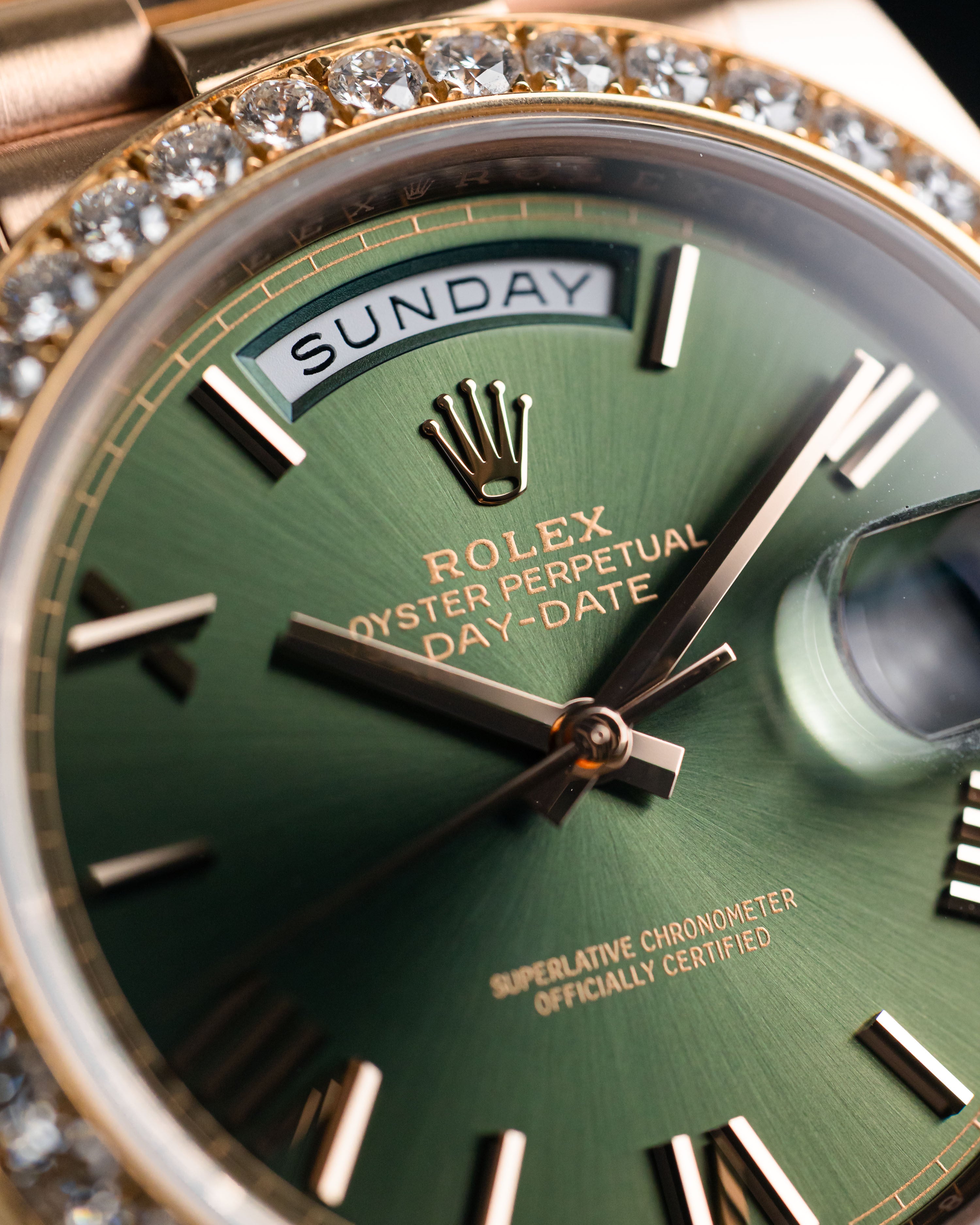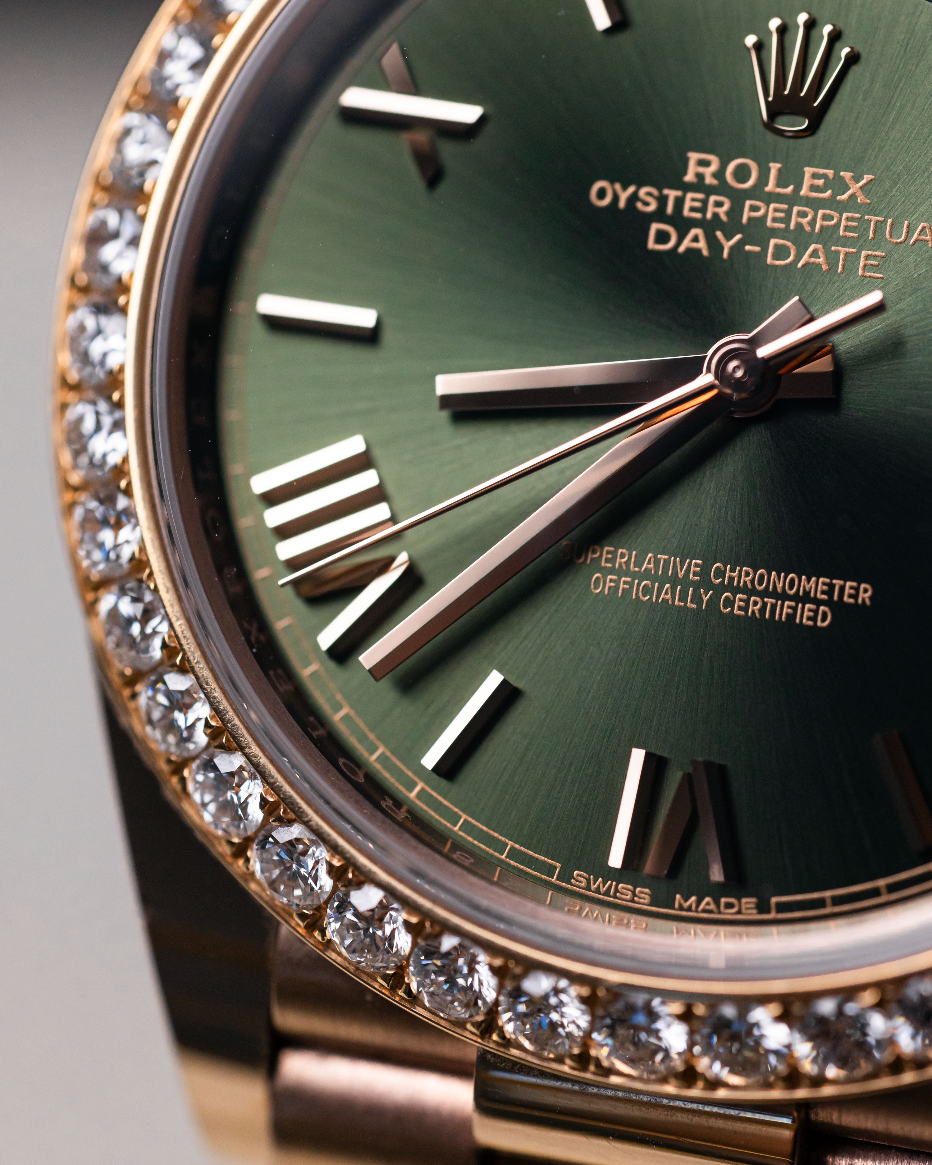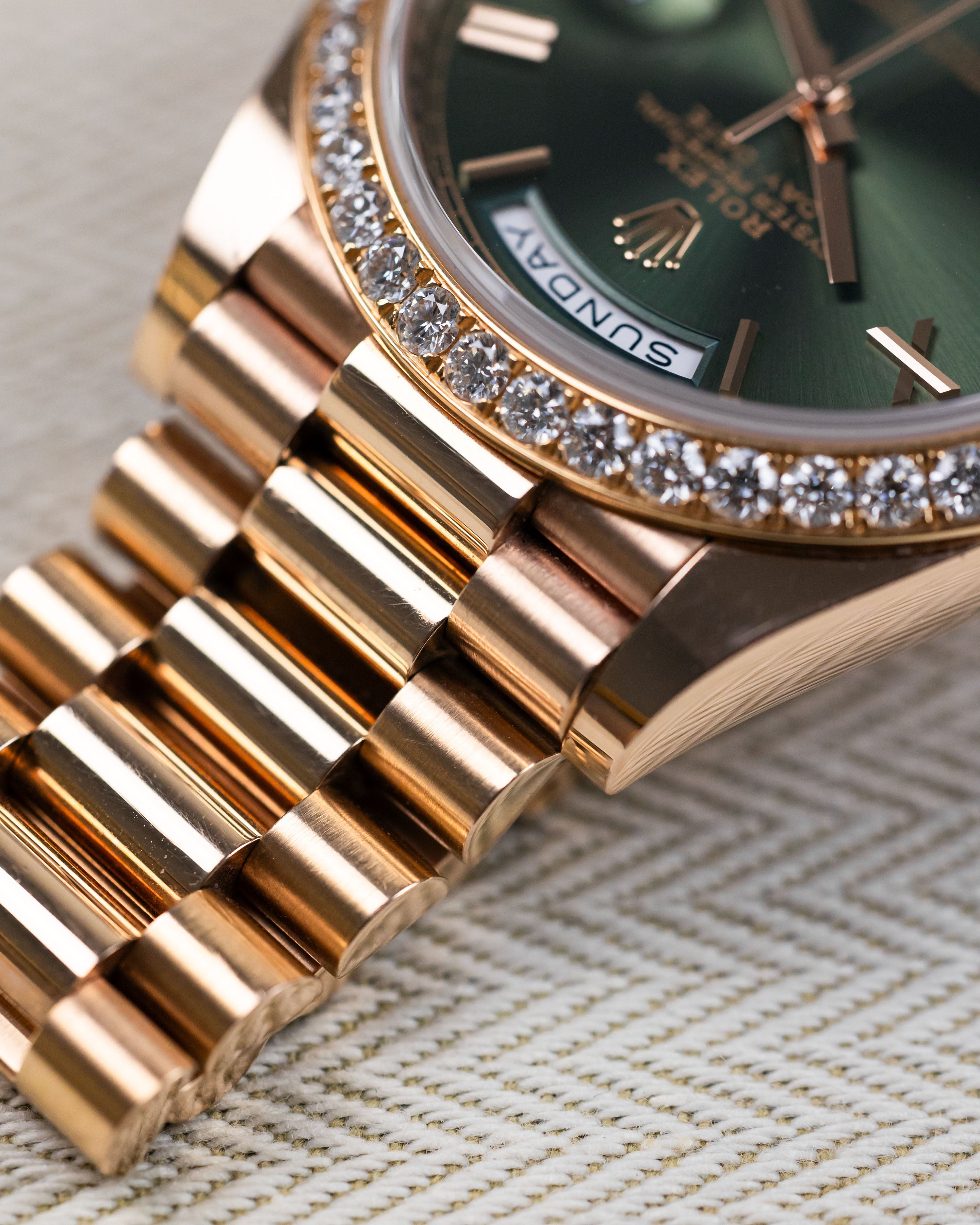 2018 Rolex Day-Date 40 Diamond Rose Gold/Olive Dial228235