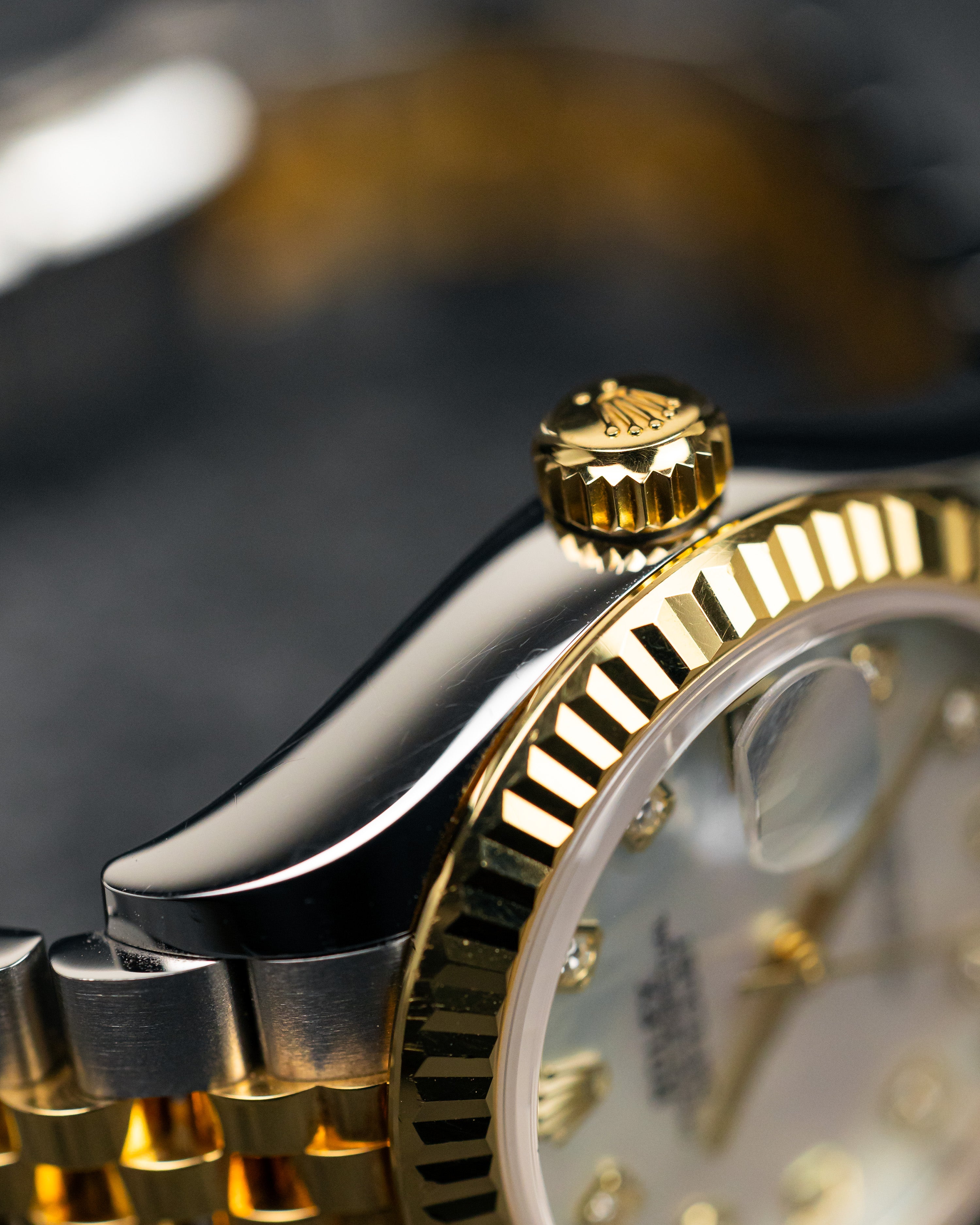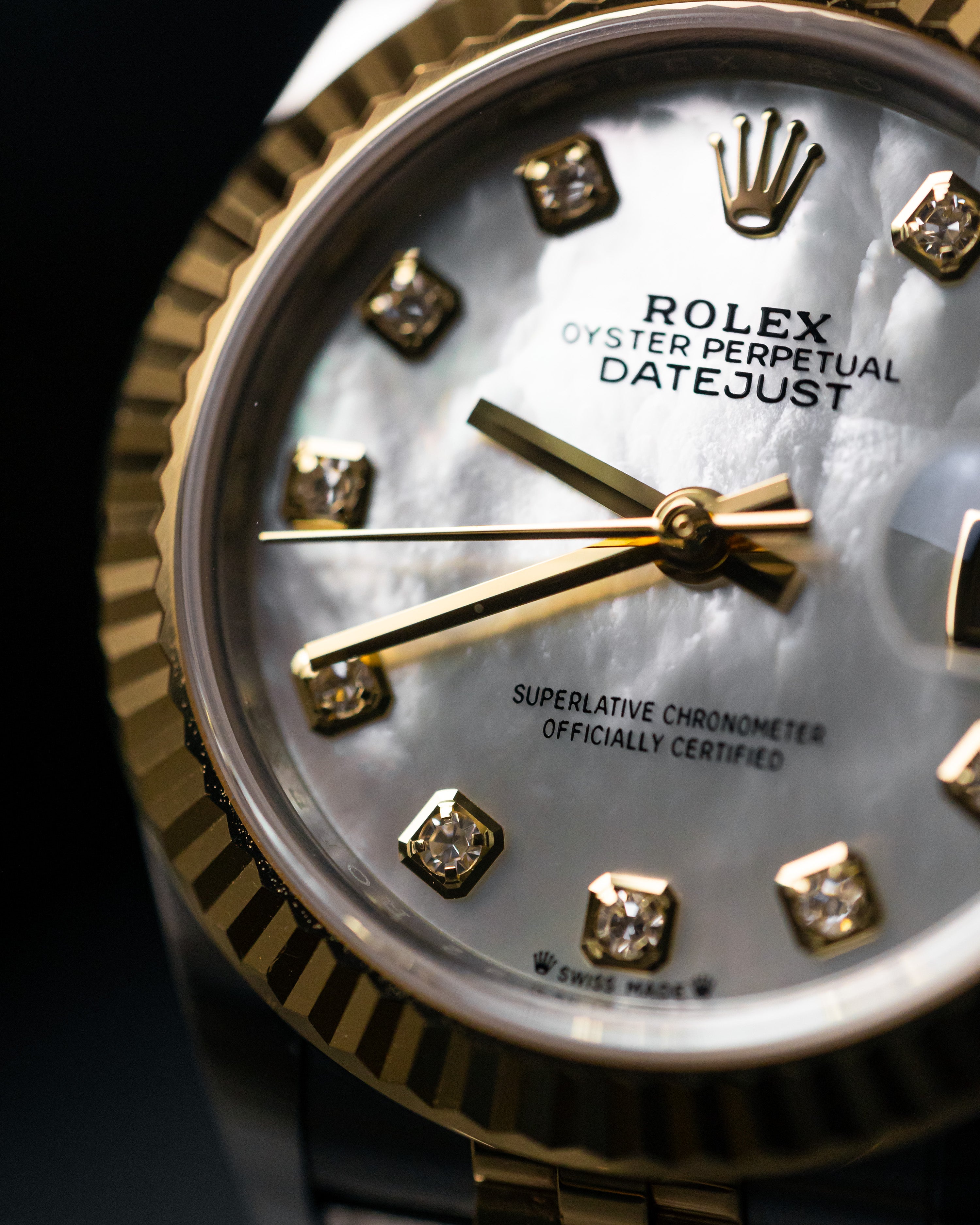 The unique Mother of Pearl dial set with diamonds along with the steel and yellow gold combination is stunning!