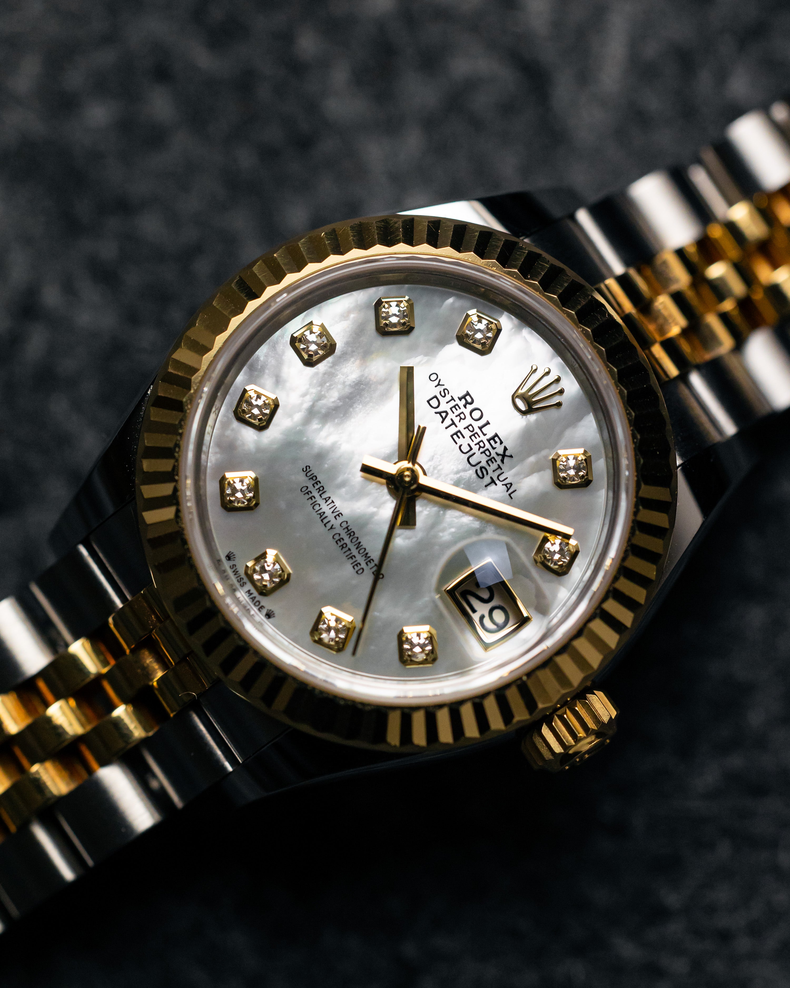 2021 Rolex Lady-Datejust 28 Two-tone Yellow Gold White MOP Diamond Dial 279173