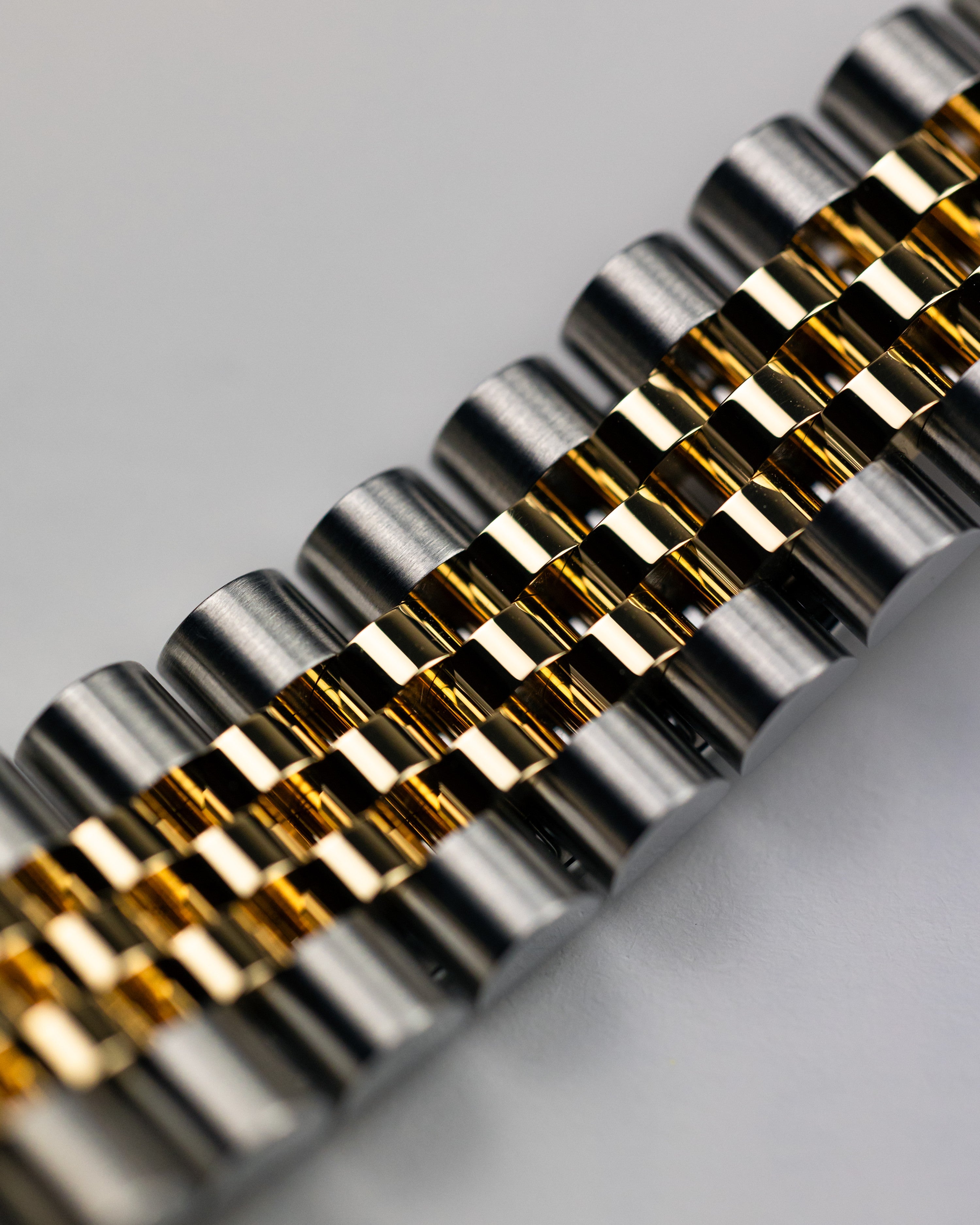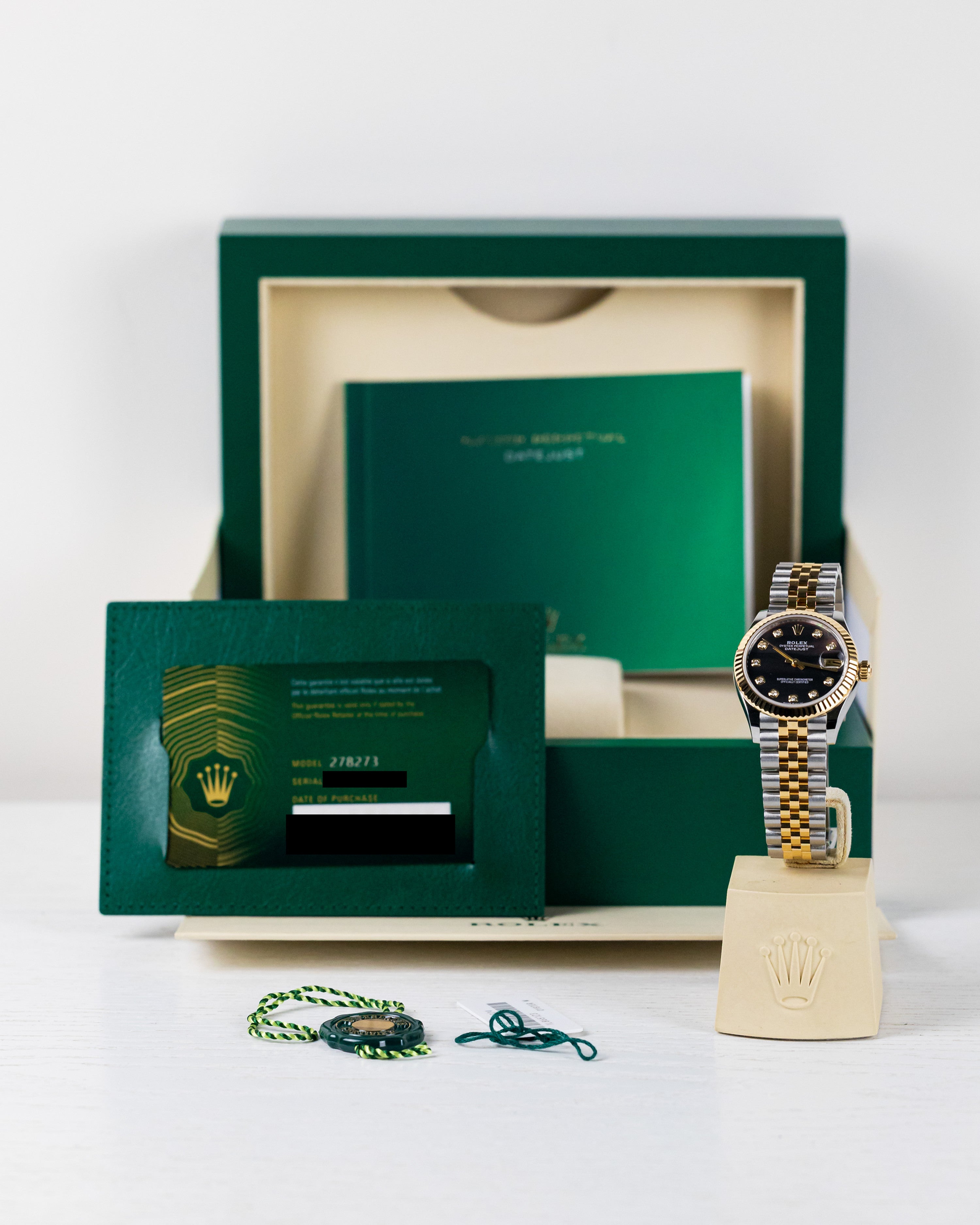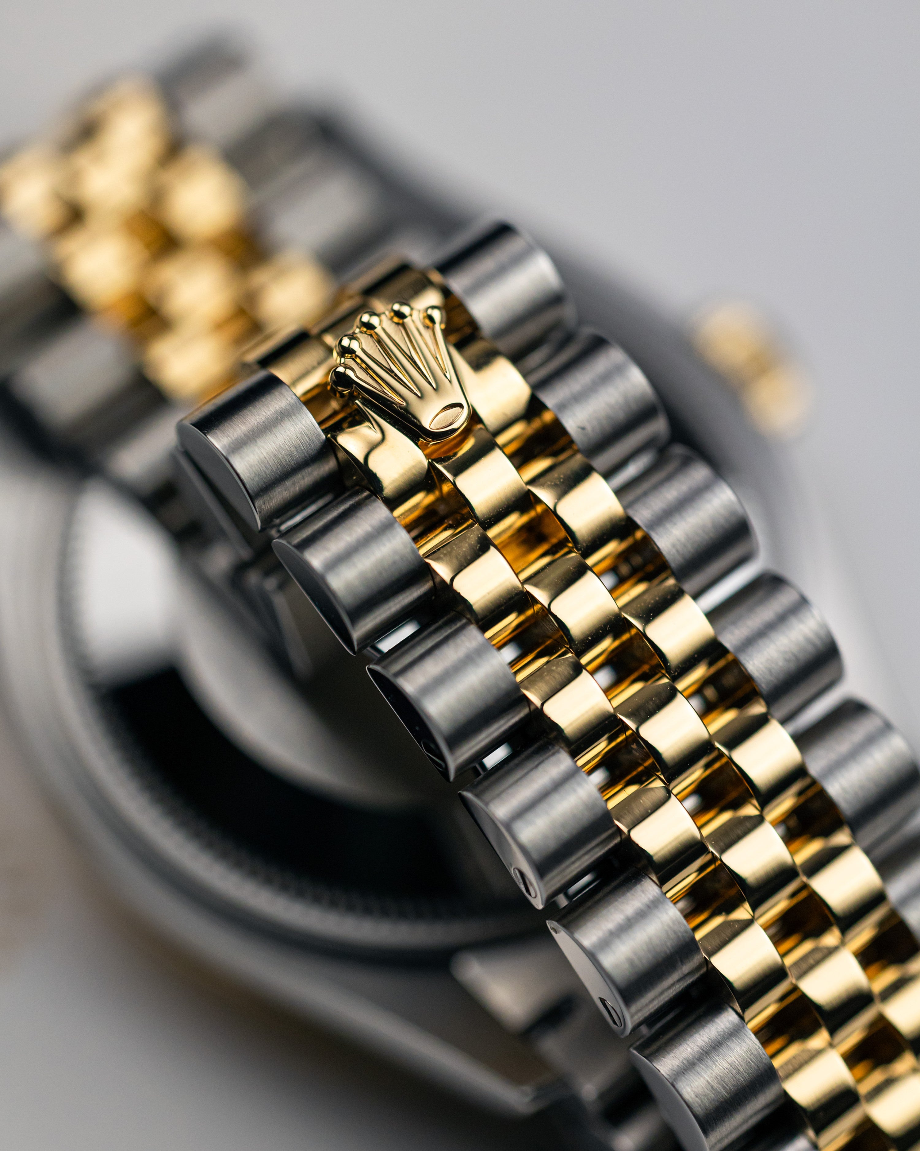 A classic ladies watch with the favourable gold and steel combination, fluted bezel paired with the unique black mother of pearl dial. Each dial having its unique colour and pattern, you will never find an identical one on another wrist.