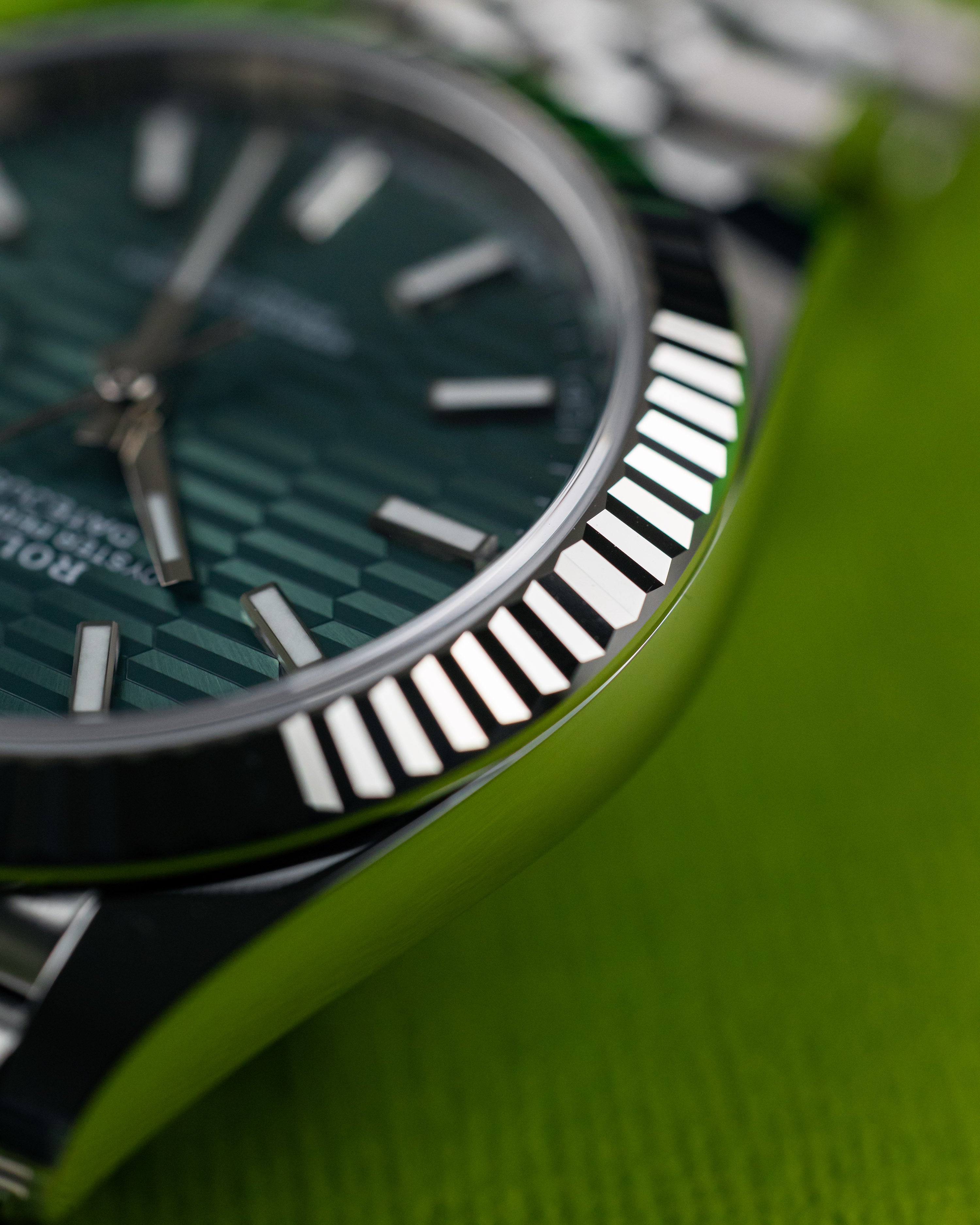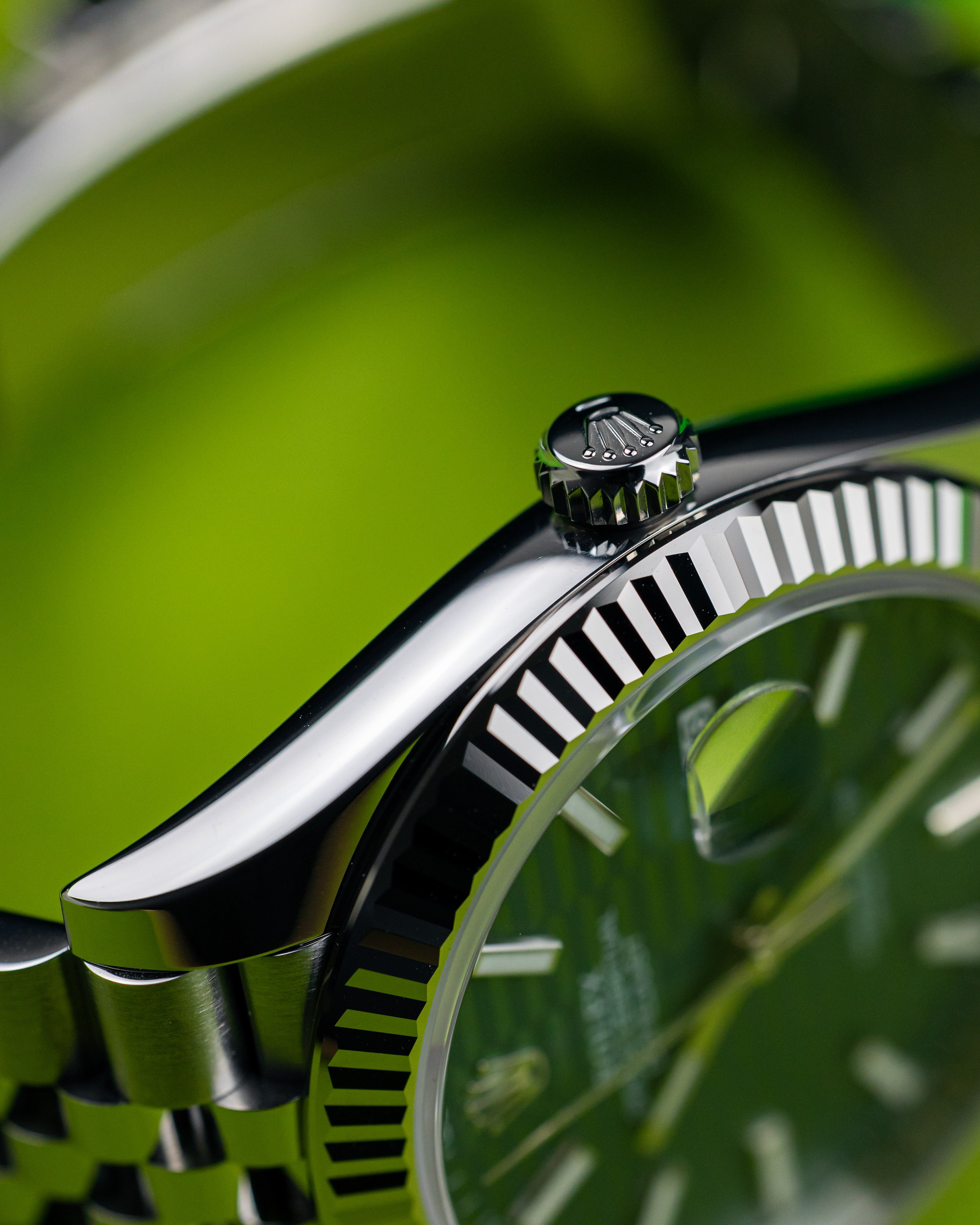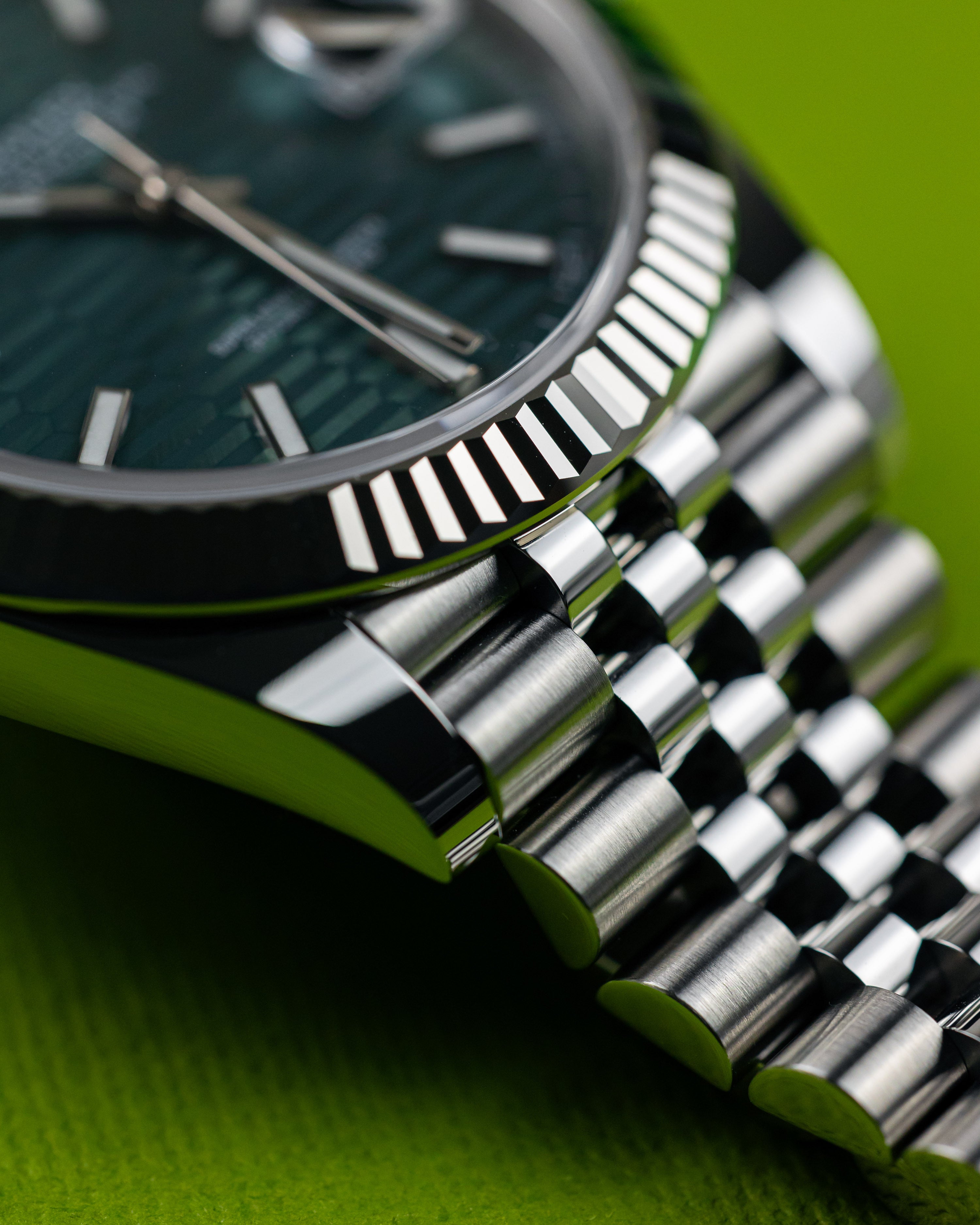With motif dials recently being discontinued, it is a rare opportunity to get your hands on the sought after Datejust combination featuring the green motif dial, fluted bezel and of course the jubilee bracelet.