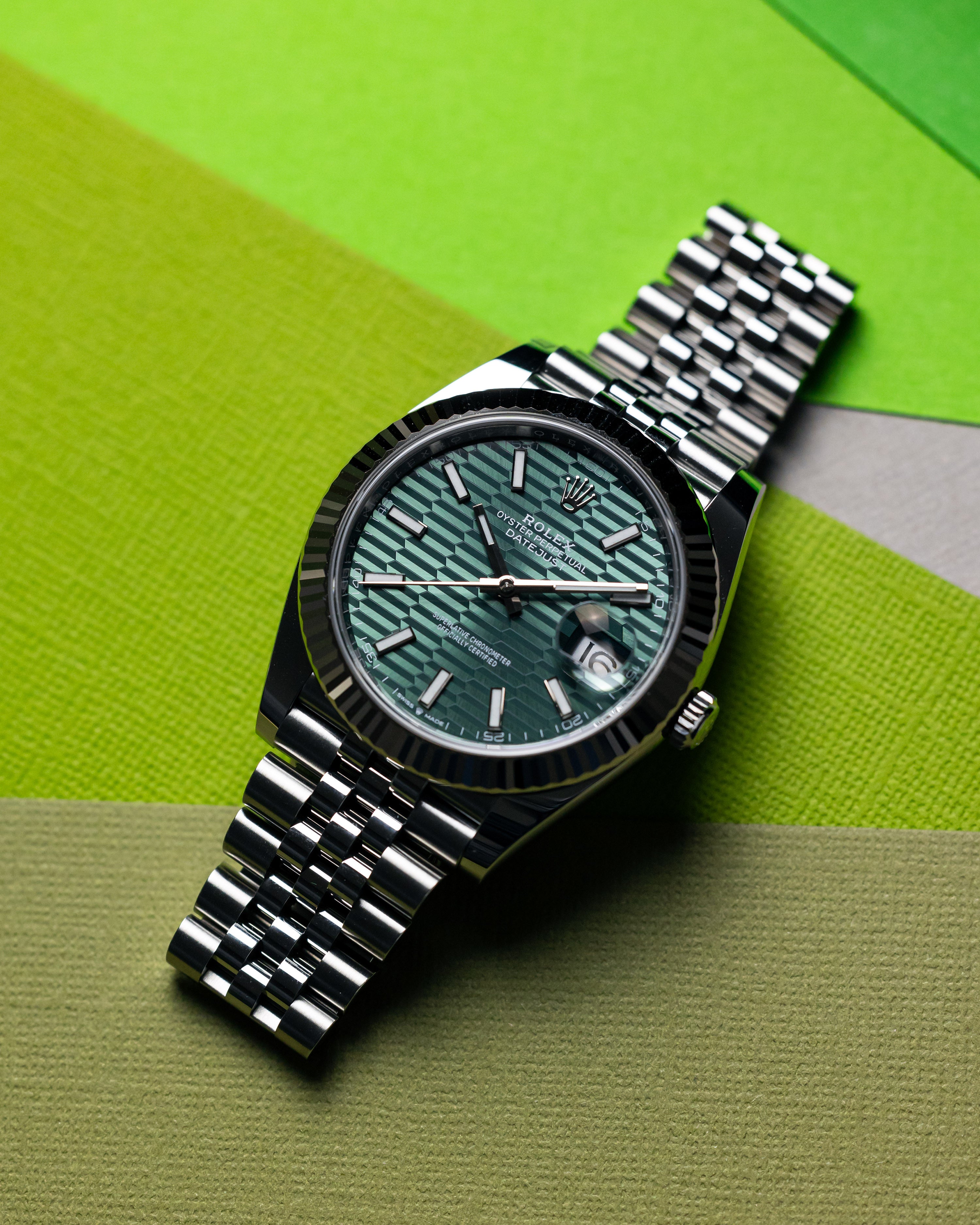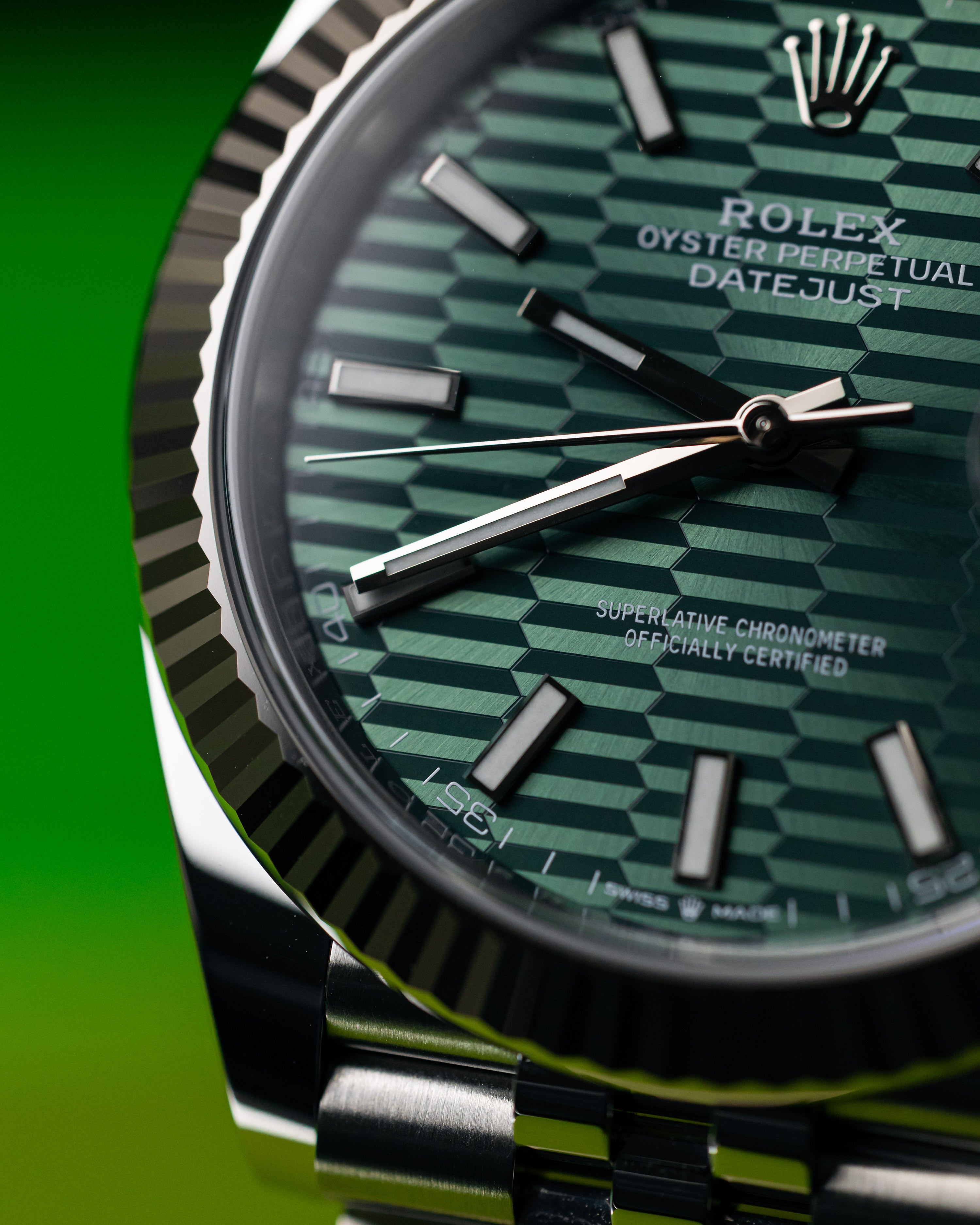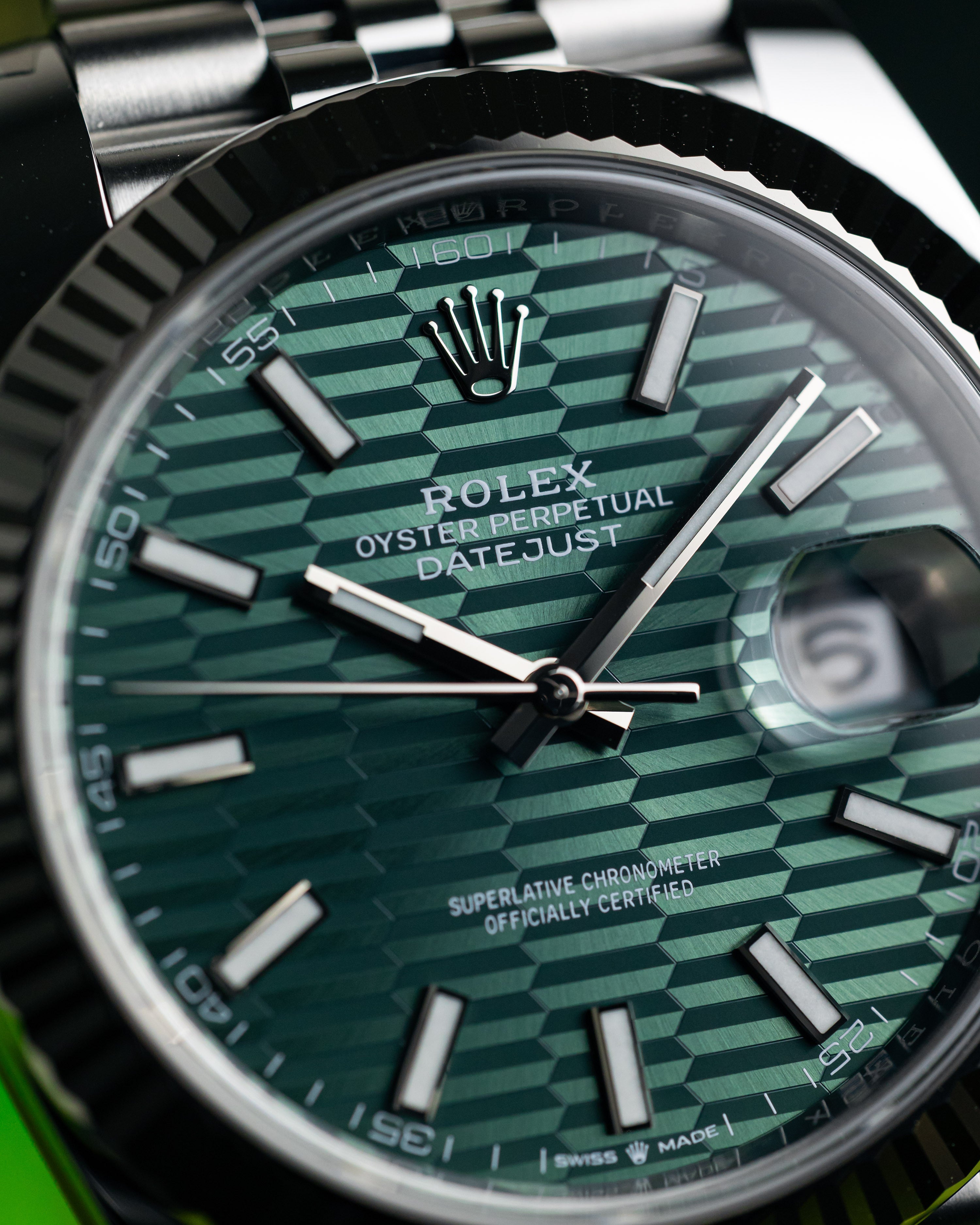 With motif dials recently being discontinued, it is a rare opportunity to get your hands on the sought after Datejust combination featuring the green motif dial, fluted bezel and of course the jubilee bracelet.