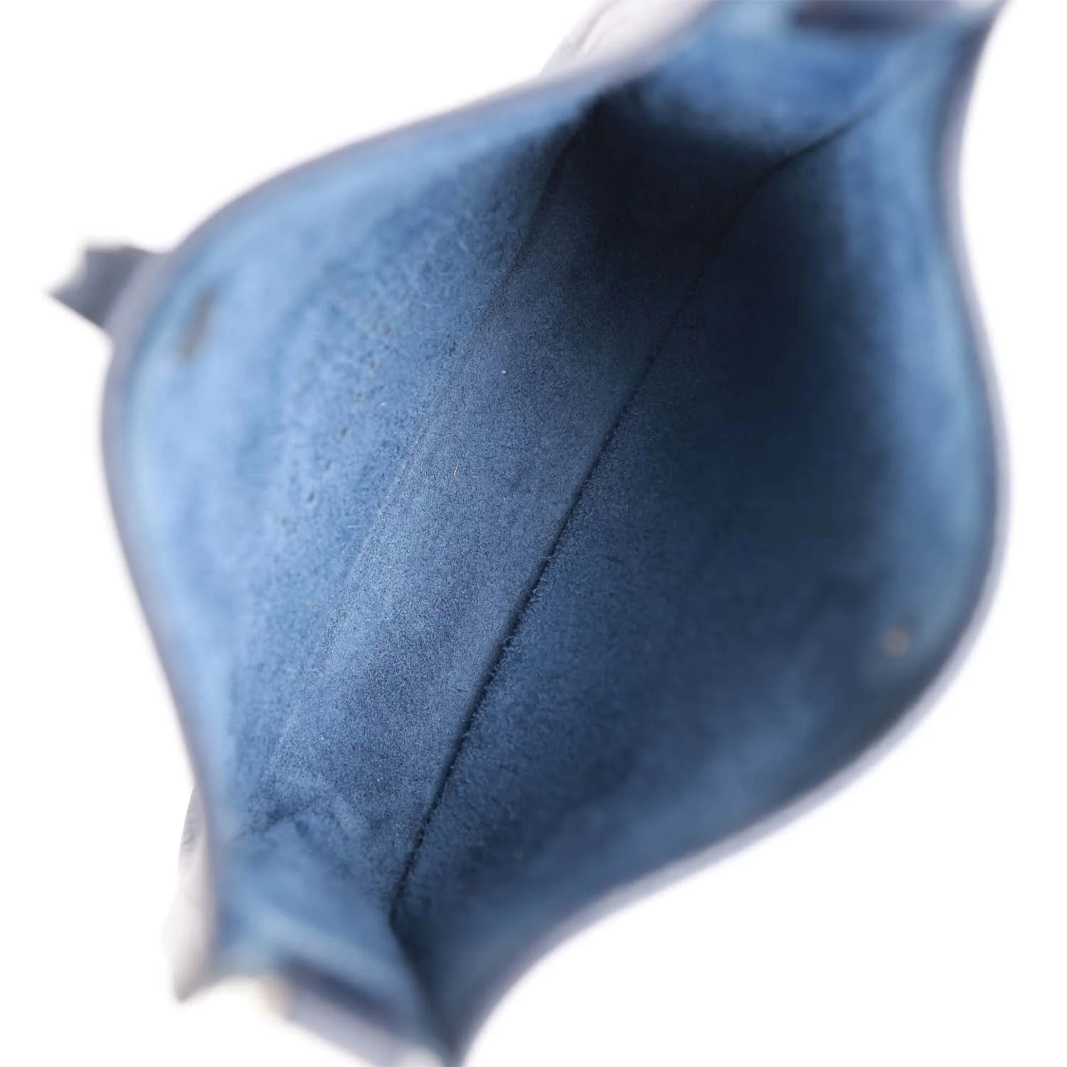 This Evelyne is in BleuNuit clemence leather withpalladium hardware and has tonal stitching, pull tab top closure and a BleuNuit removable canvas and leather shoulder/crossbody strap.