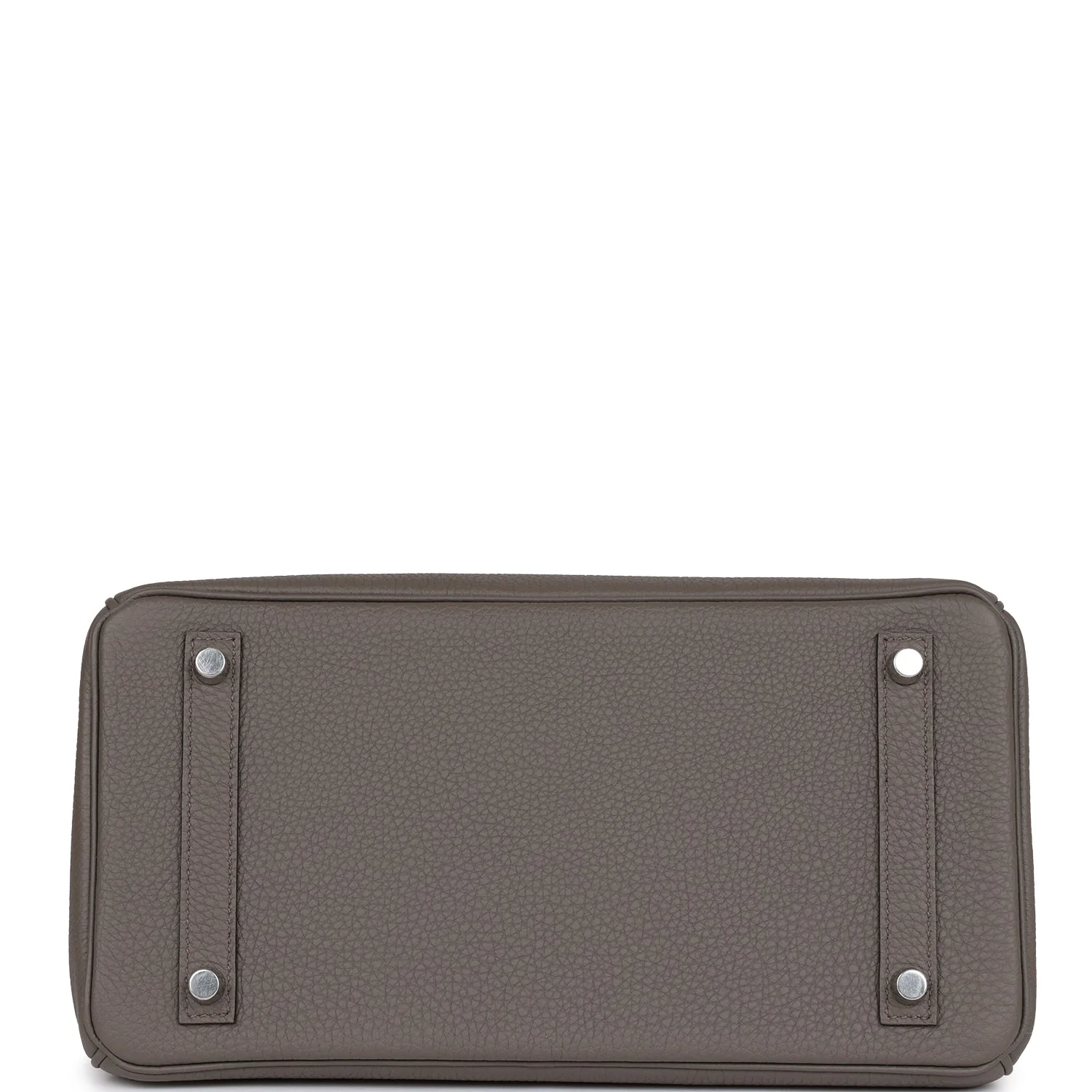 This Birkin is in Etain togo leather with palladium hardware and has tonal stitching,front flap, two straps withcentertoggle closure, clochette with lock and two keys, and double rolled handles.
