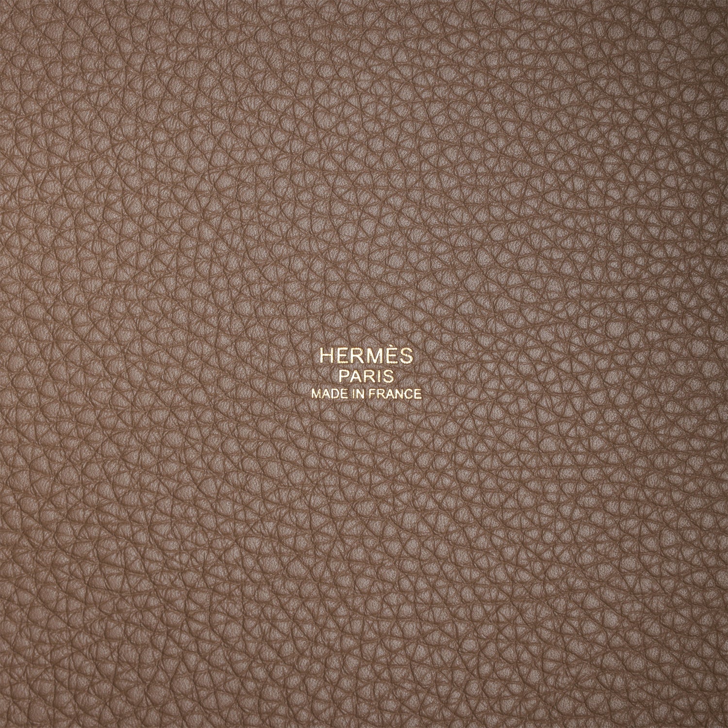 This Picotin is inEtoupe clemence leather withgold hardware and hascontrast stitching with two top handles.