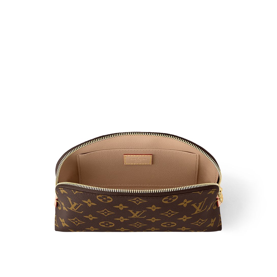 In ever-stylish Monogram canvas the Cosmetic Pouch MM is a luxurious accessory. Shiny golden brass details and textile lining complete its elegant look.