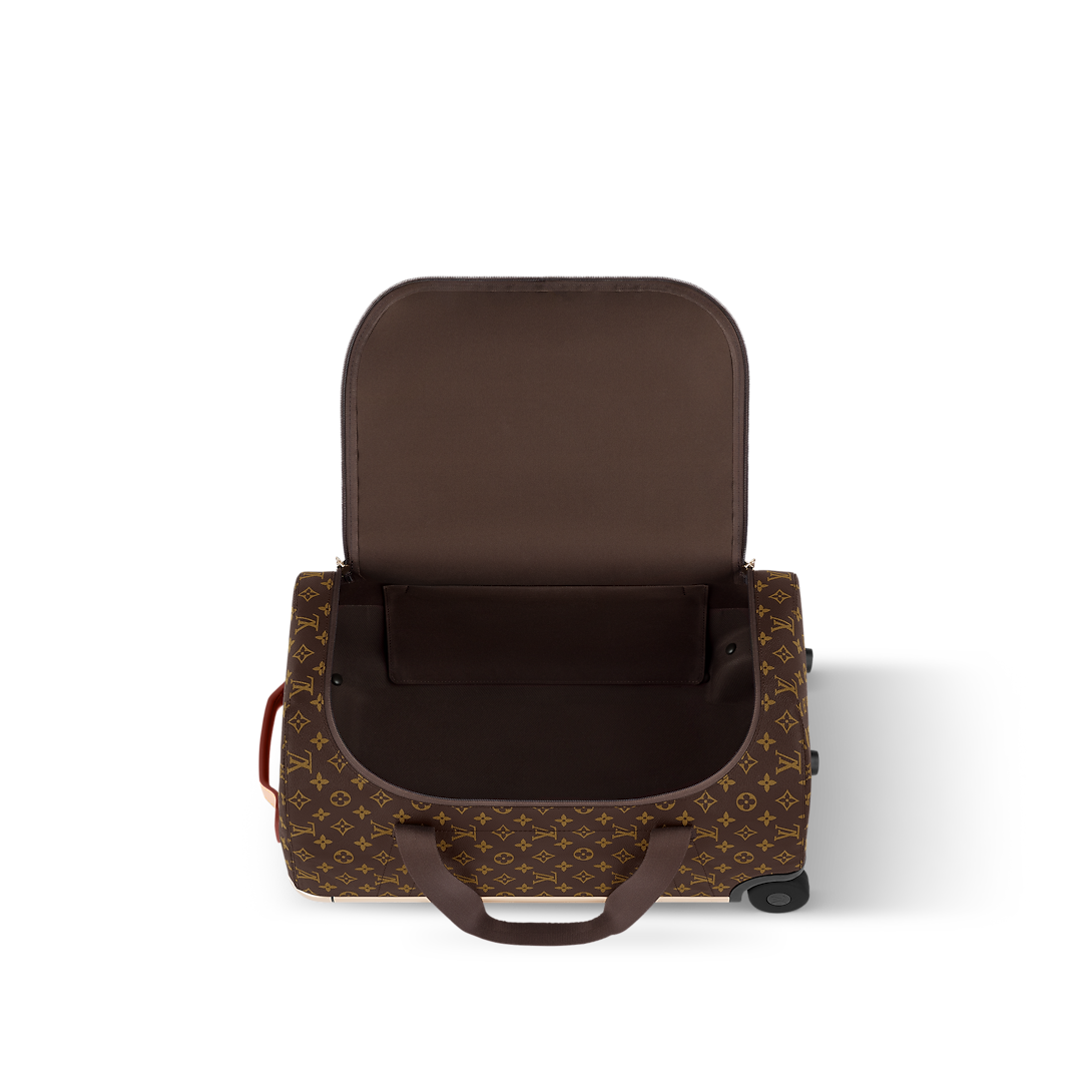 Made from iconic Monogram canvas, the Horizon Soft 55 is a rolling duffle bag with two compact wheels that boasts a totally flat interior thanks to its external cane. The lighweight trolley system and TSA padlock system, that can be opened and closed with just one hand, bring convenience. It's easy to get at what's inside thanks to a double-pull zipper closure and wide U opening. The Horizon Soft line was created in partnership with Marc Newson, widely acknowledged to be the most influential industrial designer of his generation.