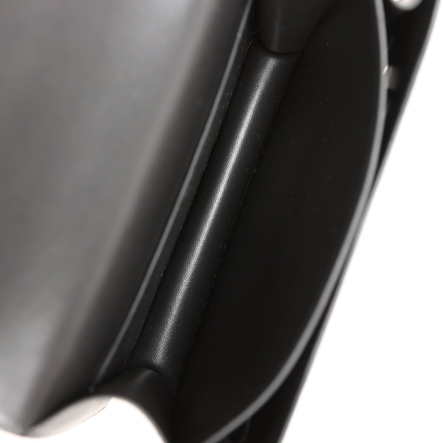The interior is lined with Black lambskin and has an open pocket on the front wall, a center divide, removable mirror and a slit pocket on the back wall.