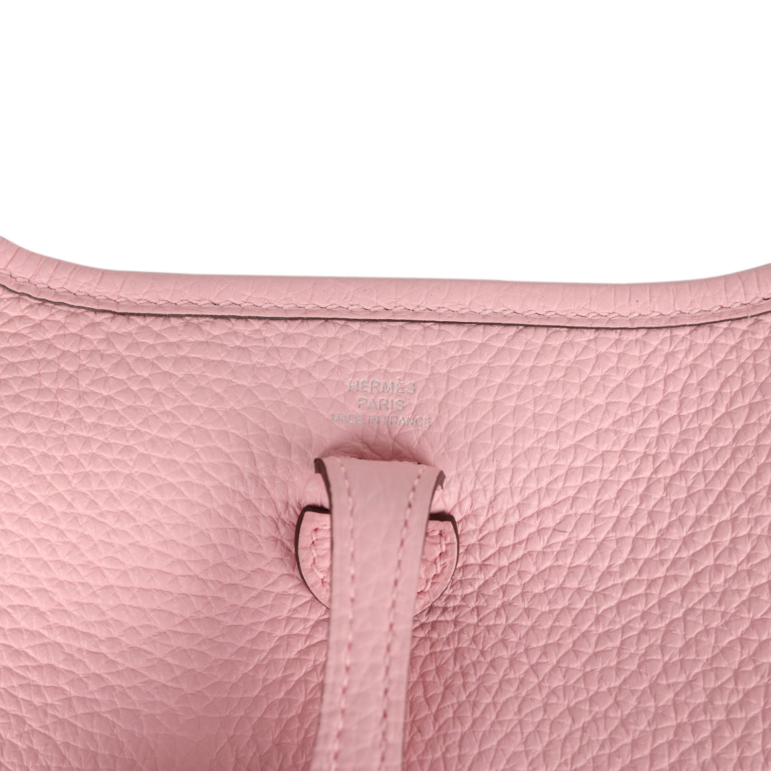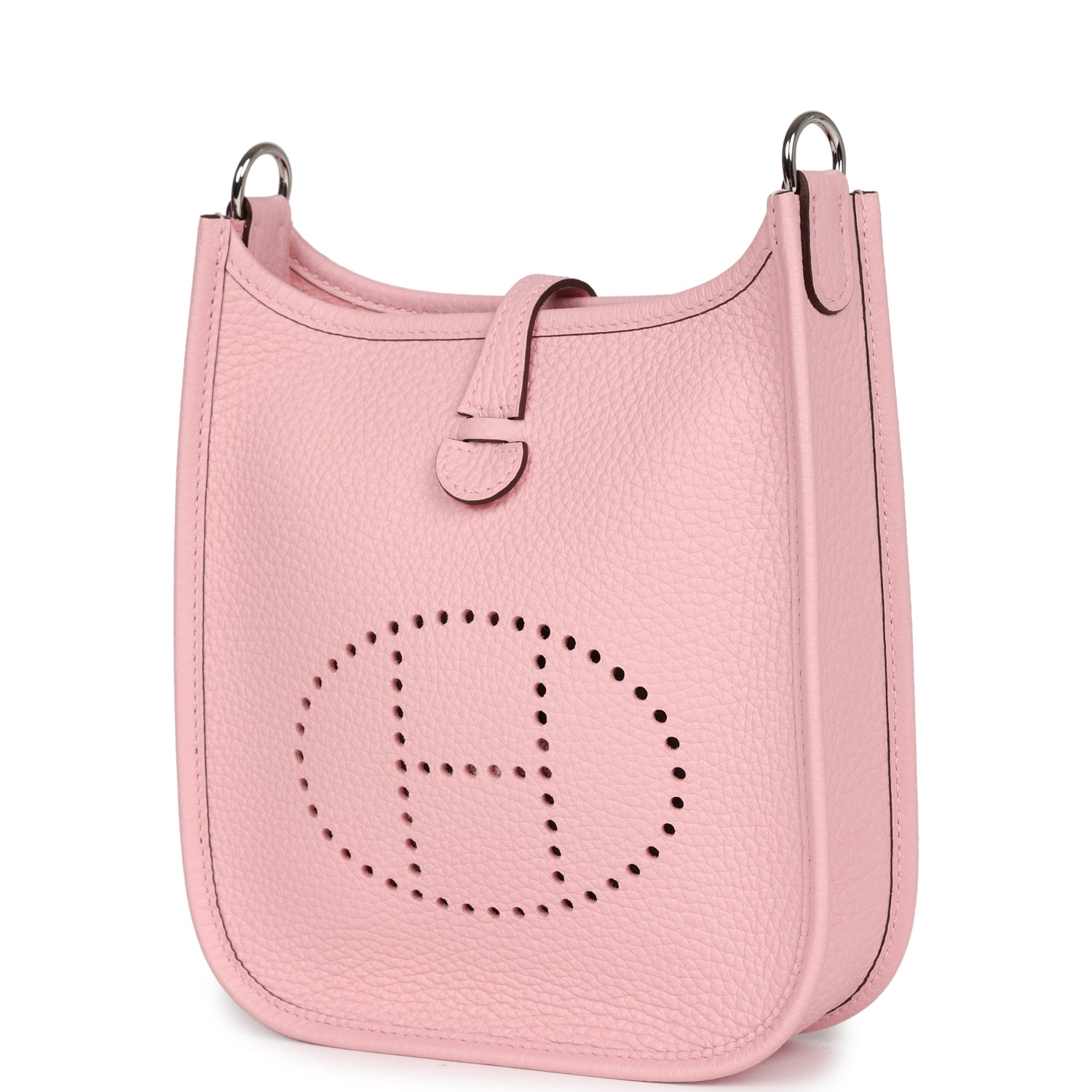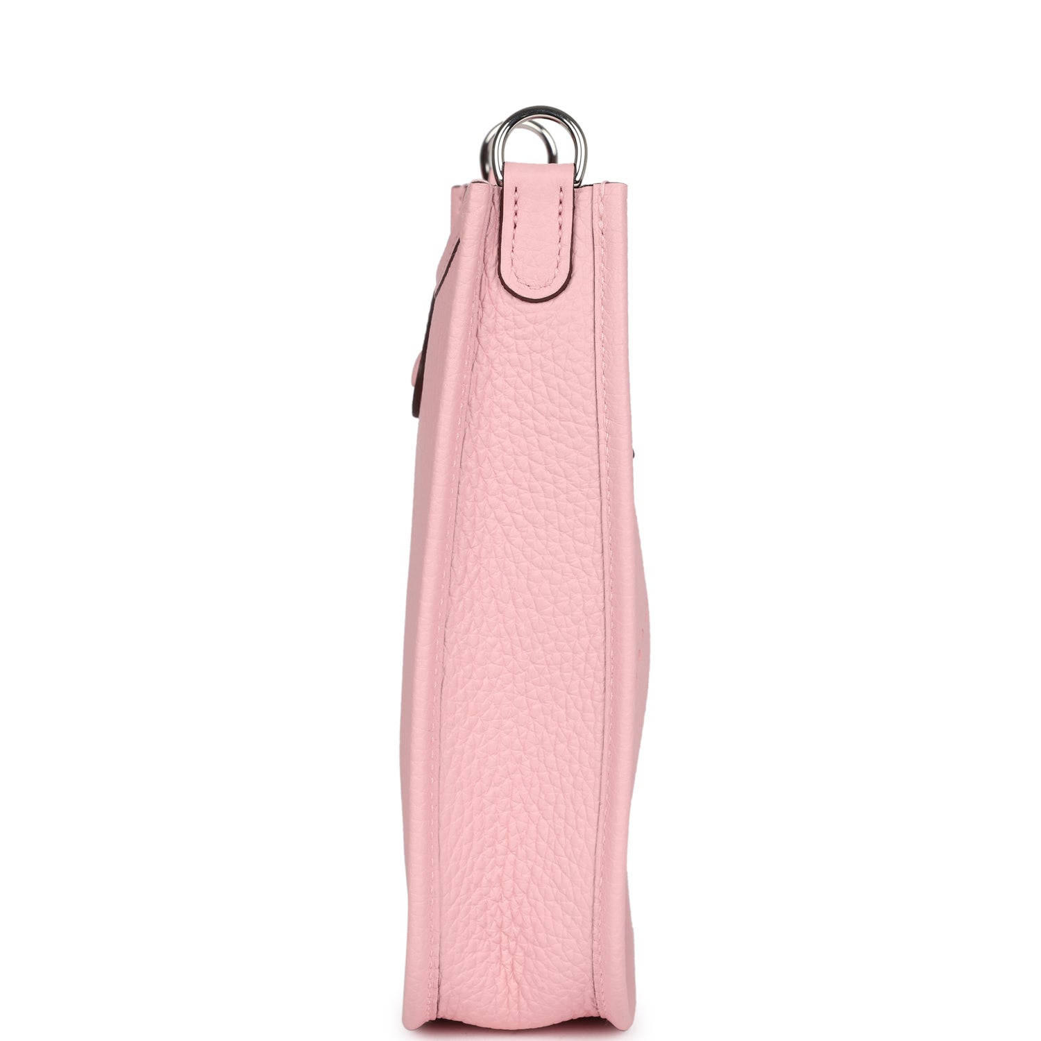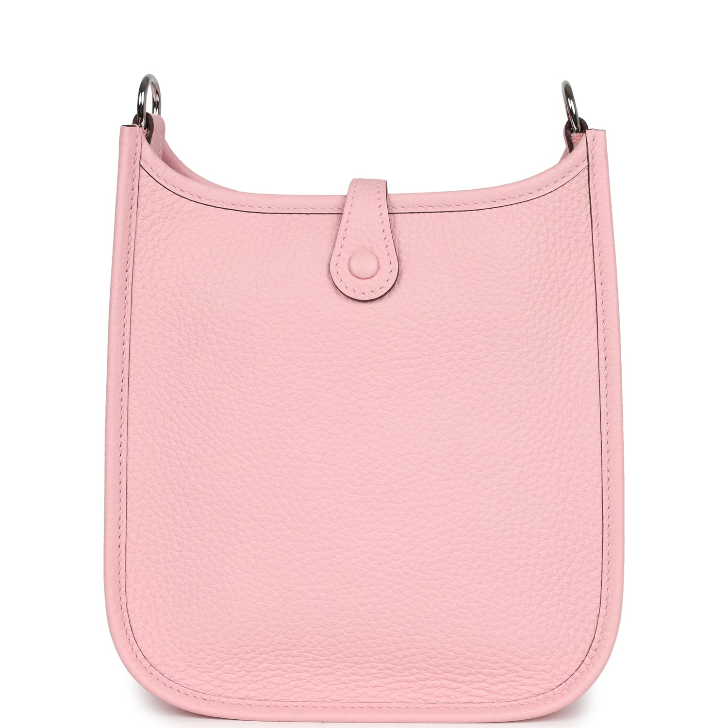 This Evelyne TPM is in Rose Sakura clemence leather with palladium hardware and features tonal stitching stitching, pull tab top closure and a removable canvas and leather shoulder/crossbody strap.