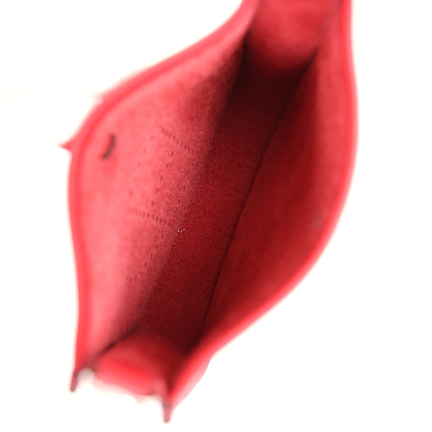 This Evelyne TPM is in Vermillion clemence leather with palladium hardware and features tonal stitching, pull tab top closure and a matching removable canvas and leather shoulder/crossbody strap.