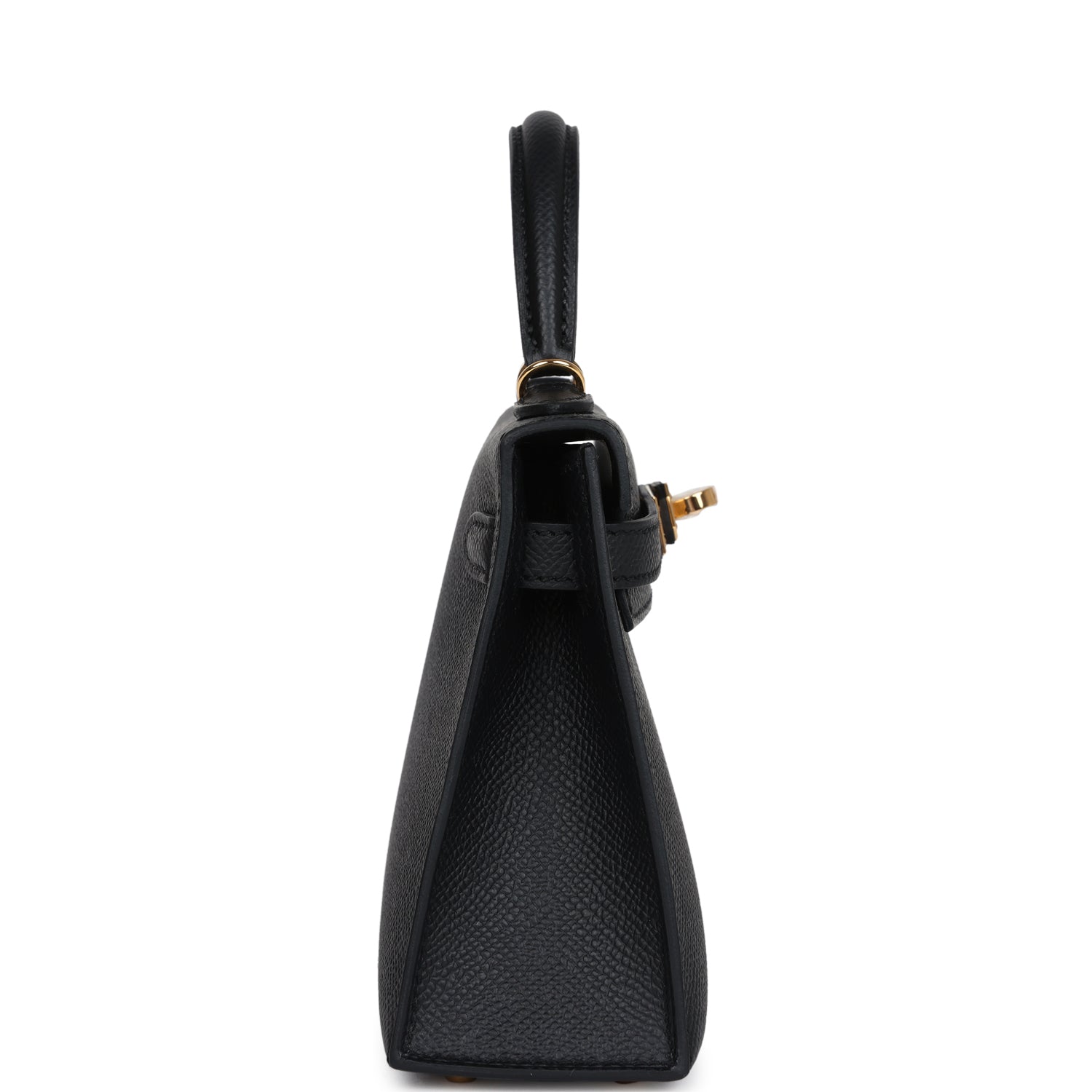 This Kelly, in the Sellier style, is in Black epsom leather with gold hardware and has tonal stitching, two straps with front toggle closure, single rolled handle and removable shoulder strap.