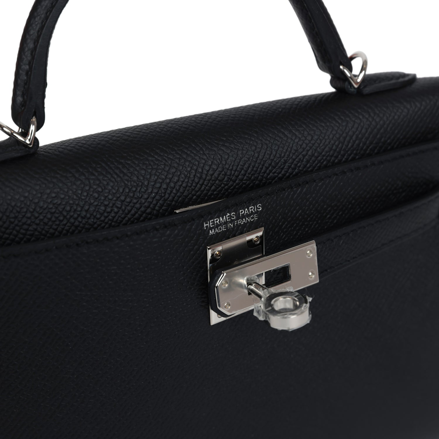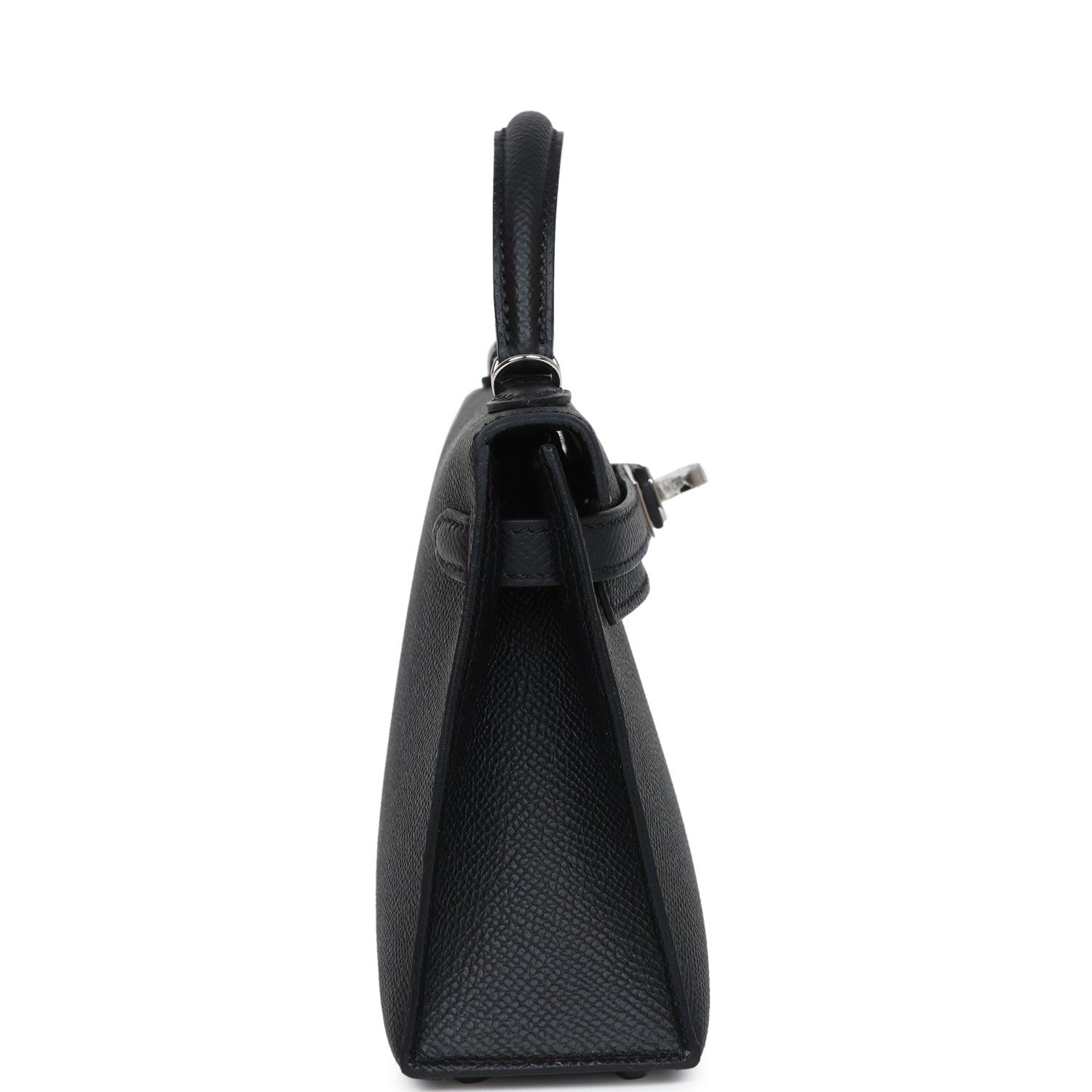 This Kelly, in the Sellier style, is in Black epsom leather with palladium hardware and has tonal stitching, two straps with front toggle closure, single rolled handle and removable shoulder strap.