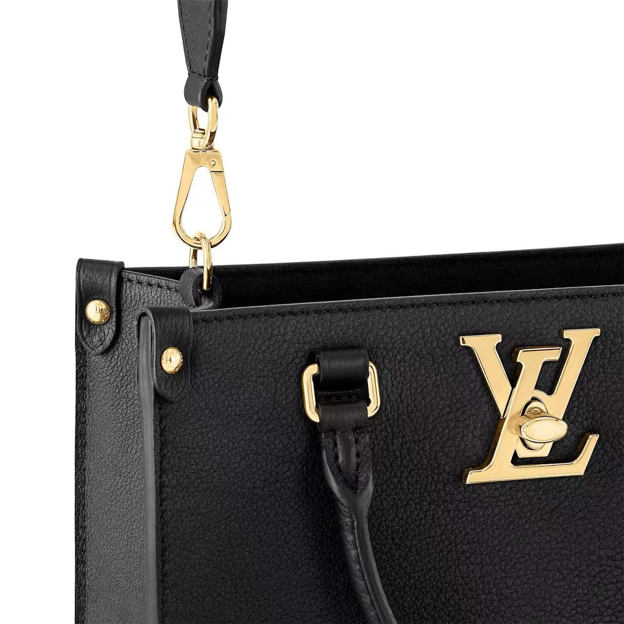 With its sleek design and sophisticated details, the Lock & Go handbag embodies effortless chic. Fashioned from smooth grained calf leather, it is finished with a gleaming L turn lock, engraved rivets and a hot-stamped L signature. Perfect for daily use, this versatile bag has both top handles and an adjustable, detachable strap for shoulder or cross-body wear.