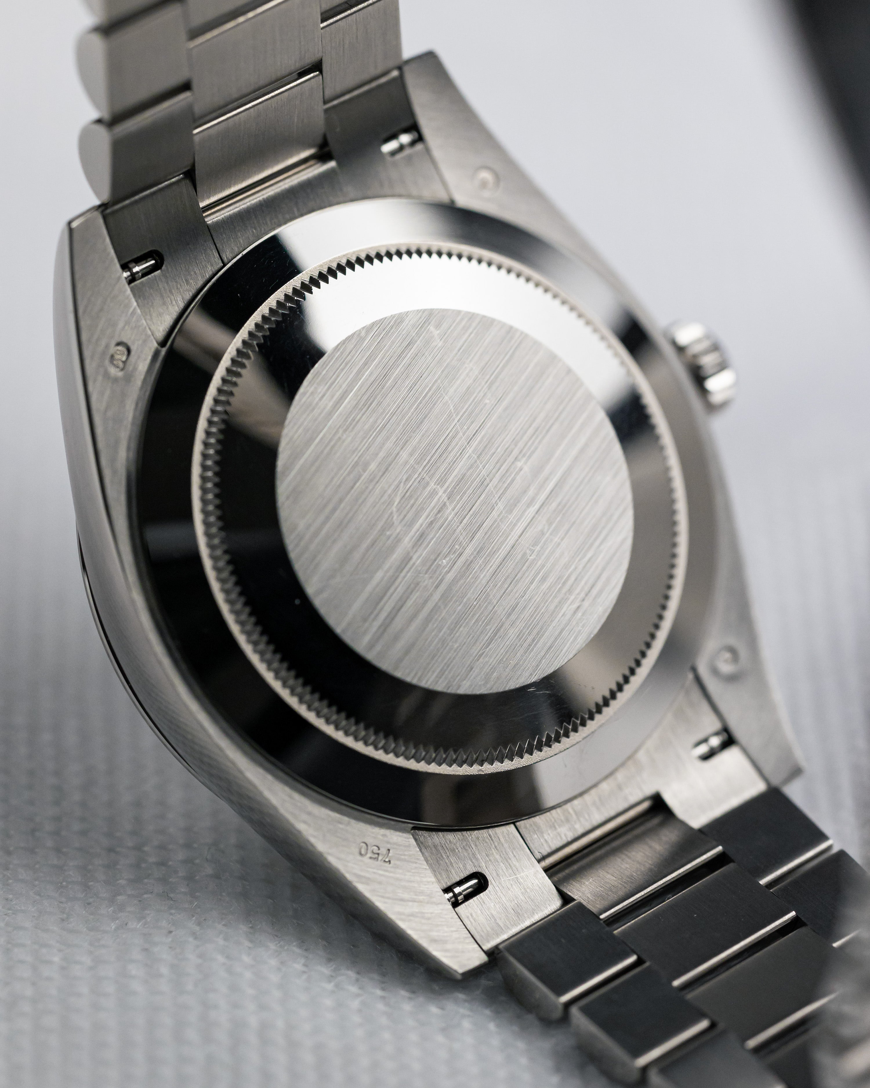 The Rolex logo is laser engraved on the Rehaut ring, perfectly aligned. In addition, the Rolex crown logo is located at 6 o’clock on the sapphire crystal.