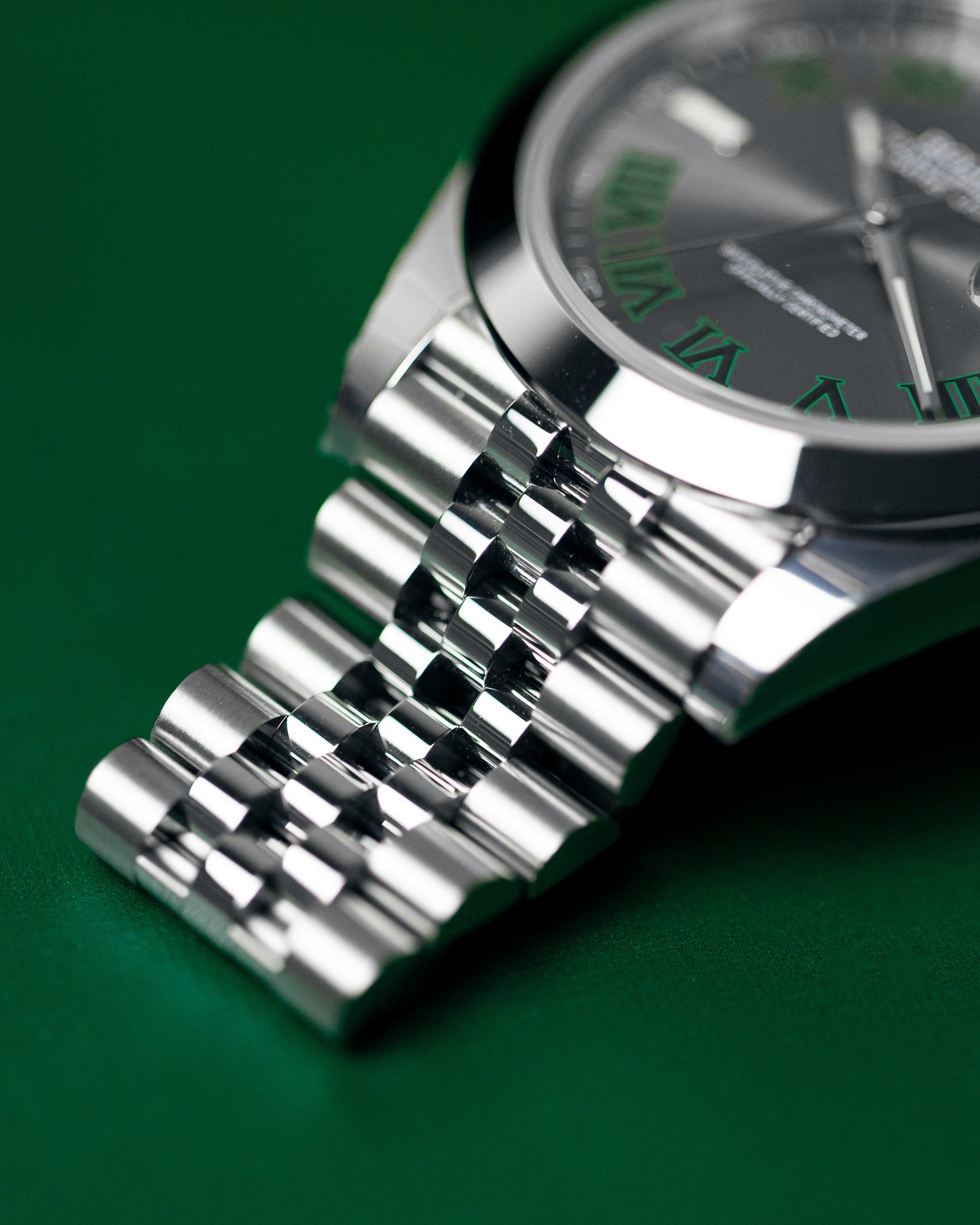 This stunning Datejust is sure to appeal with its desirable wimbledon dial. It looks great with the smooth bezel and jubilee combination.