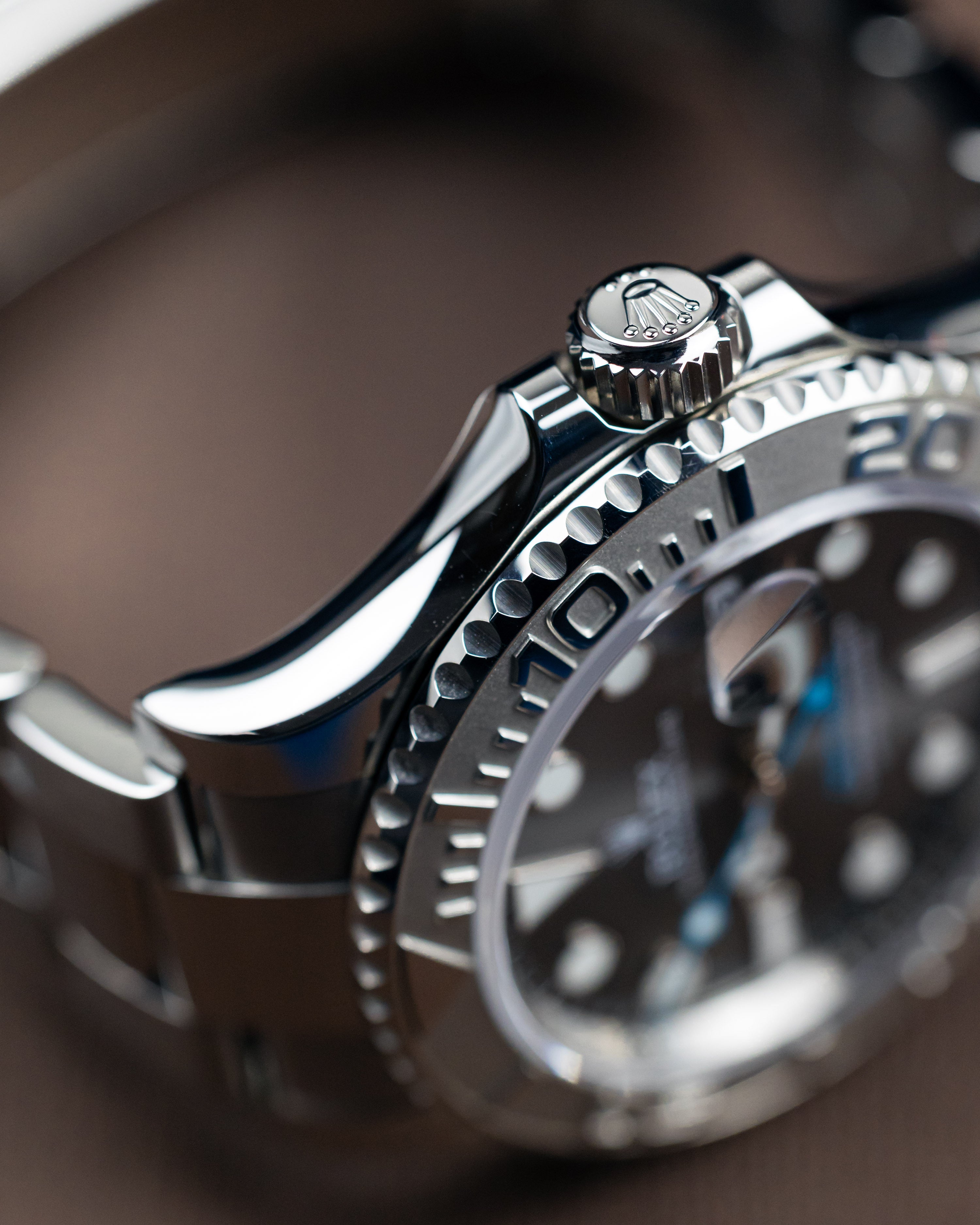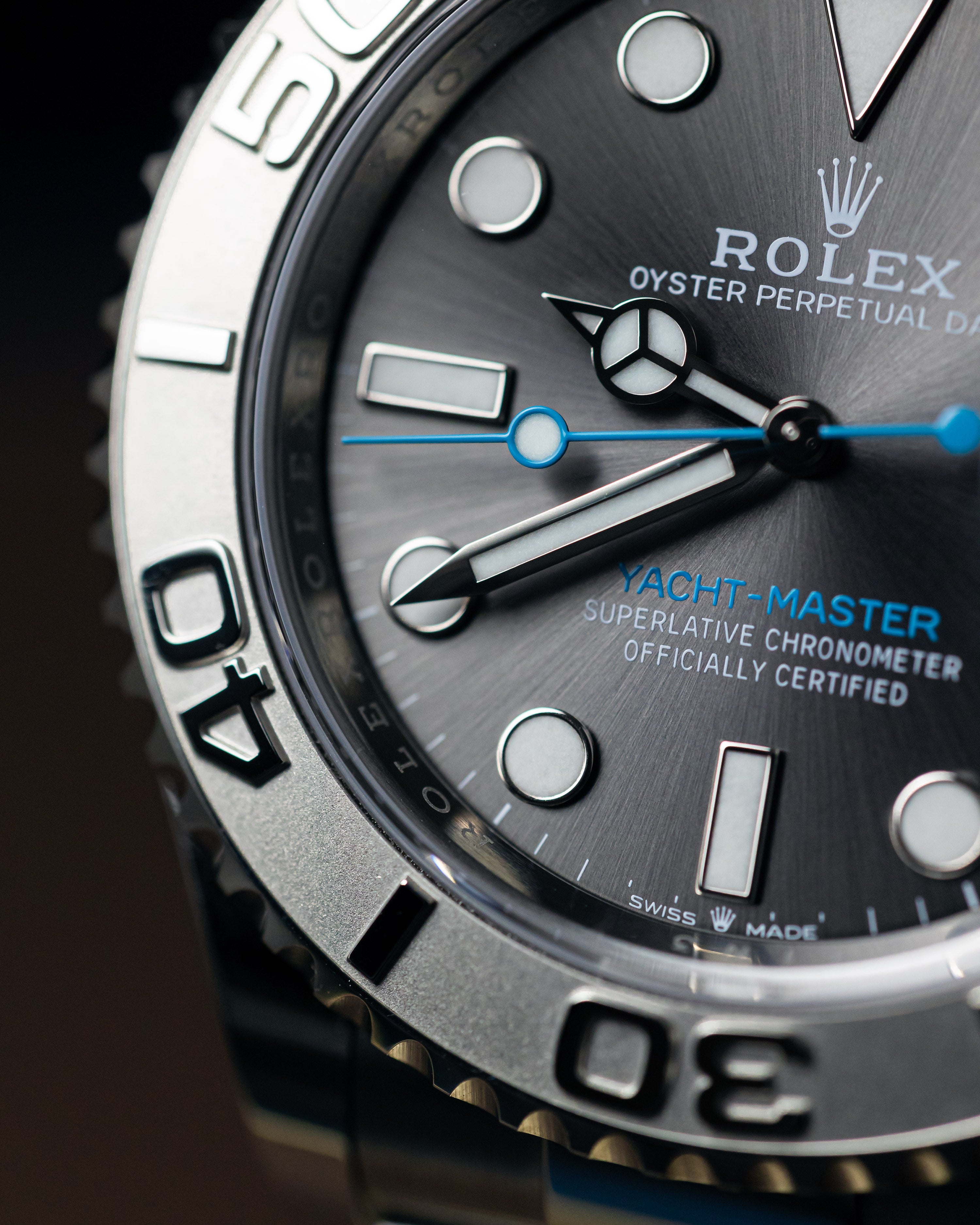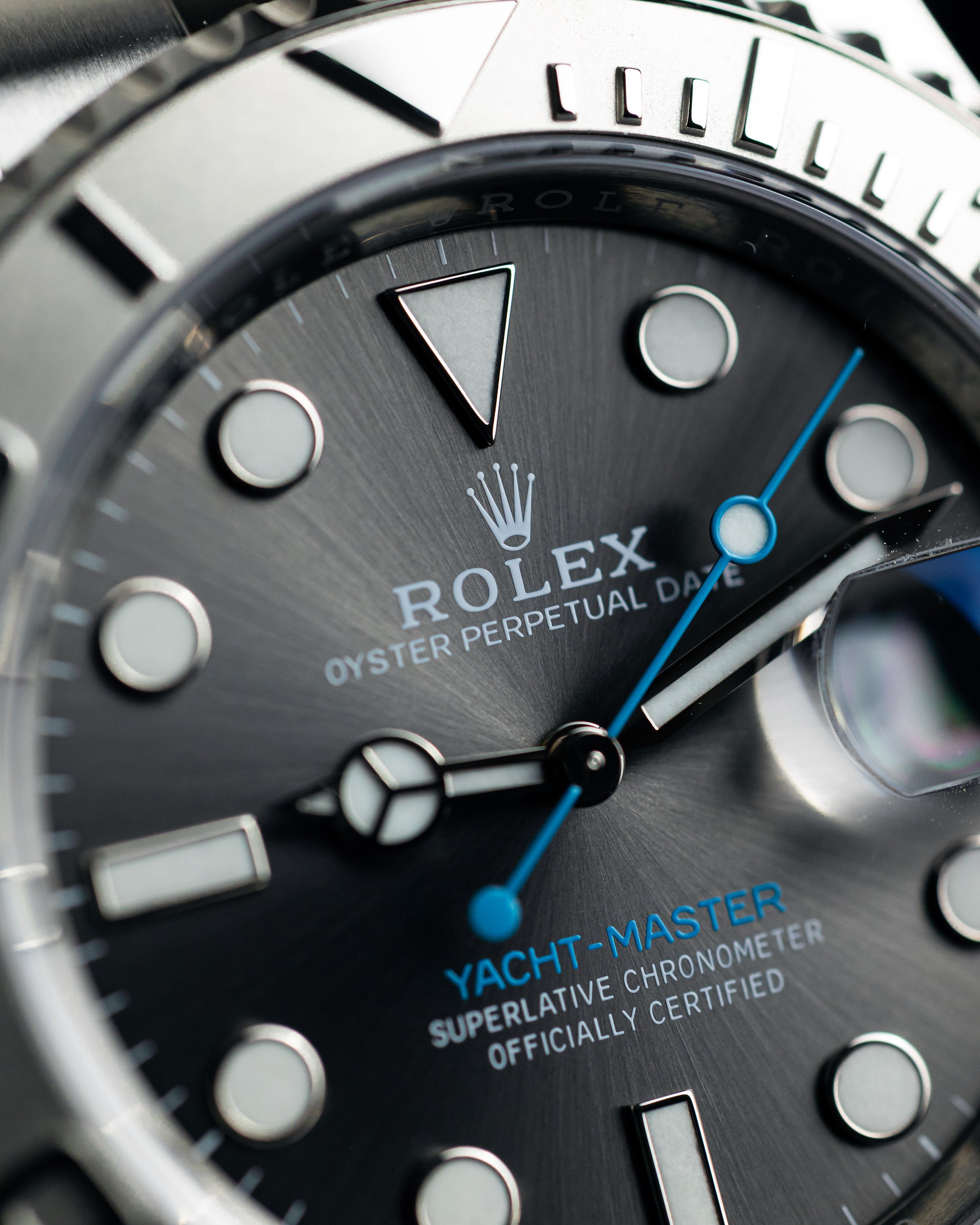 With numerous visually striking and functional features, the unique combination of the silvery-white platinum bezel designed specifically for the Yacht-Master paired with the rhodium dial is truly impressive.