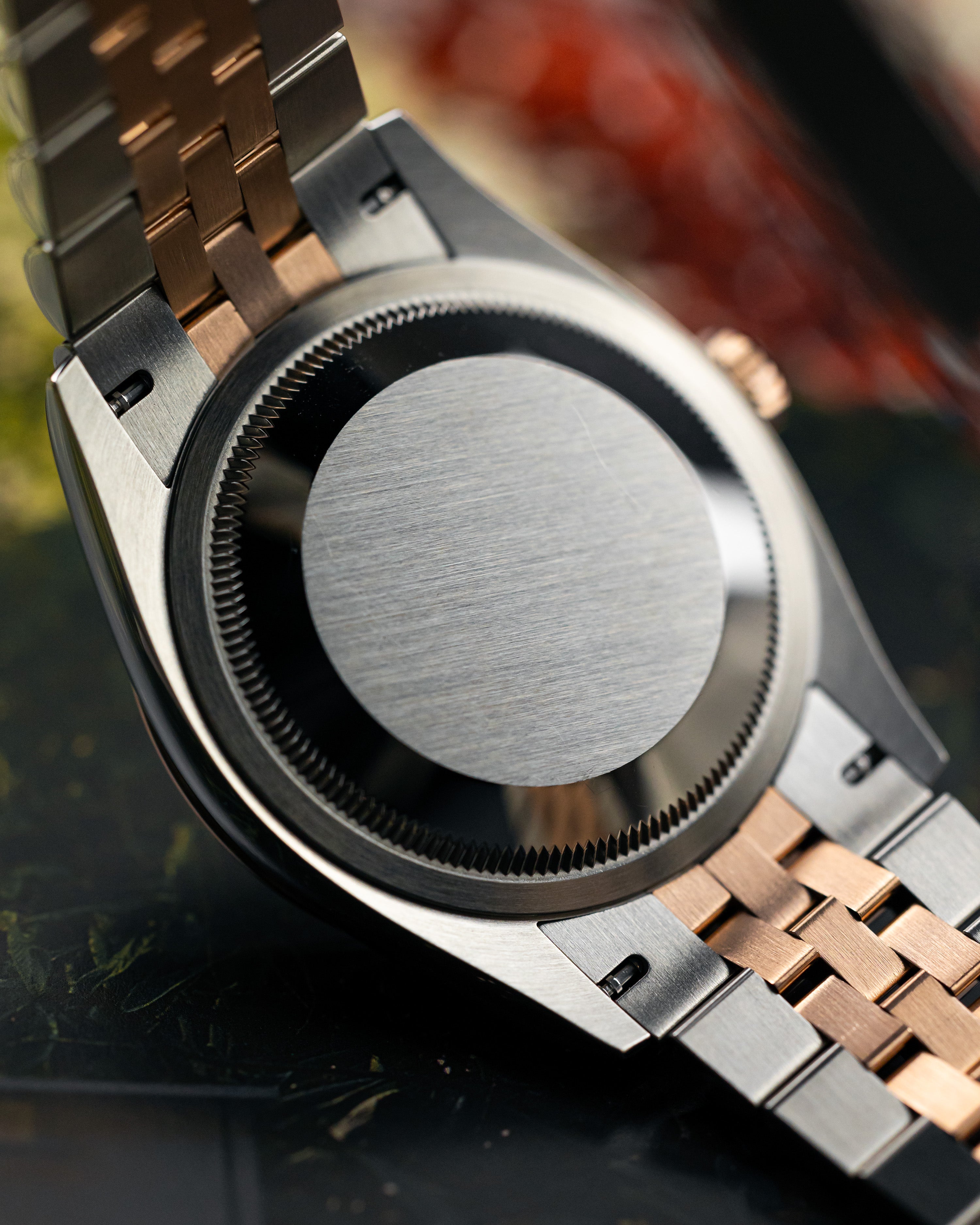 The Rolex logo is laser engraved on the Rehaut ring, perfectly aligned. In addition, the Rolex crown logo is located at 6 o’clock on the sapphire crystal.