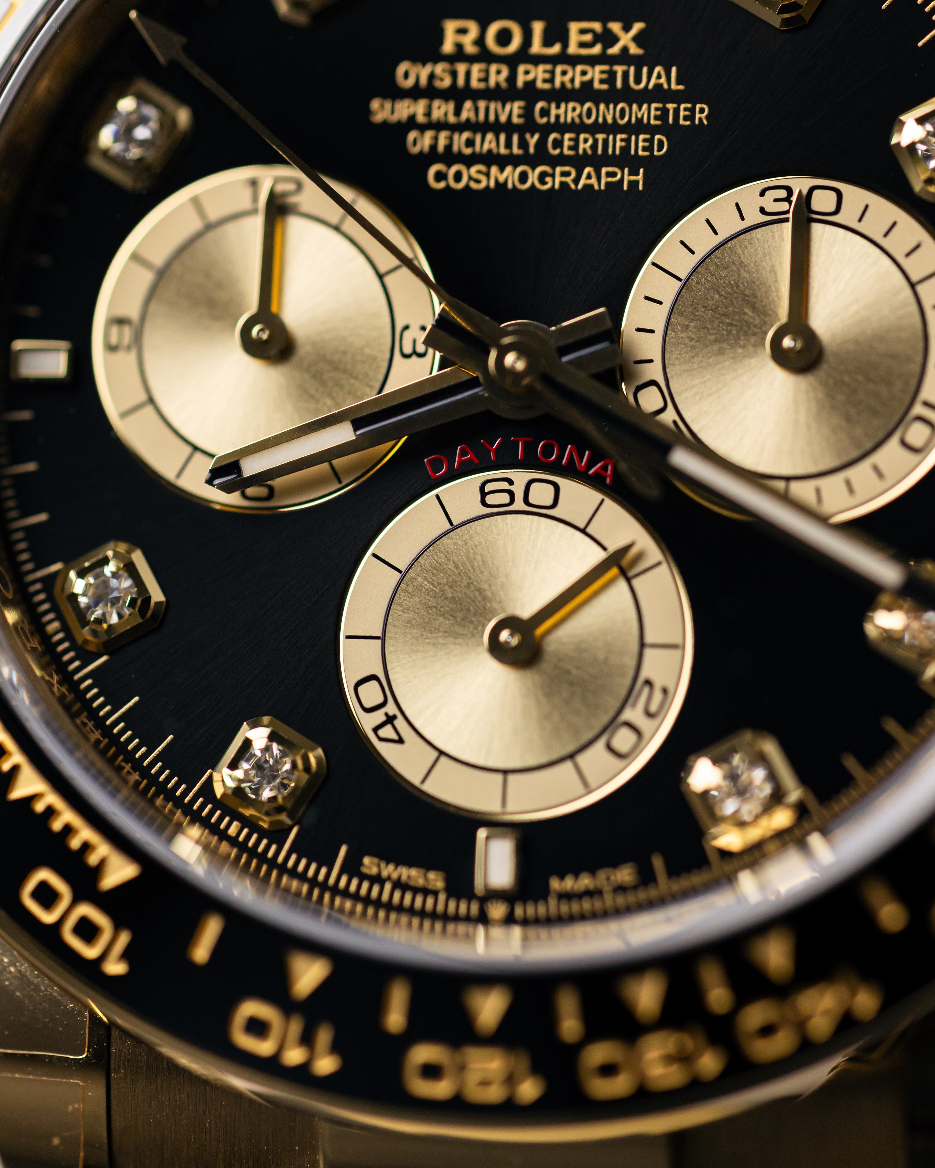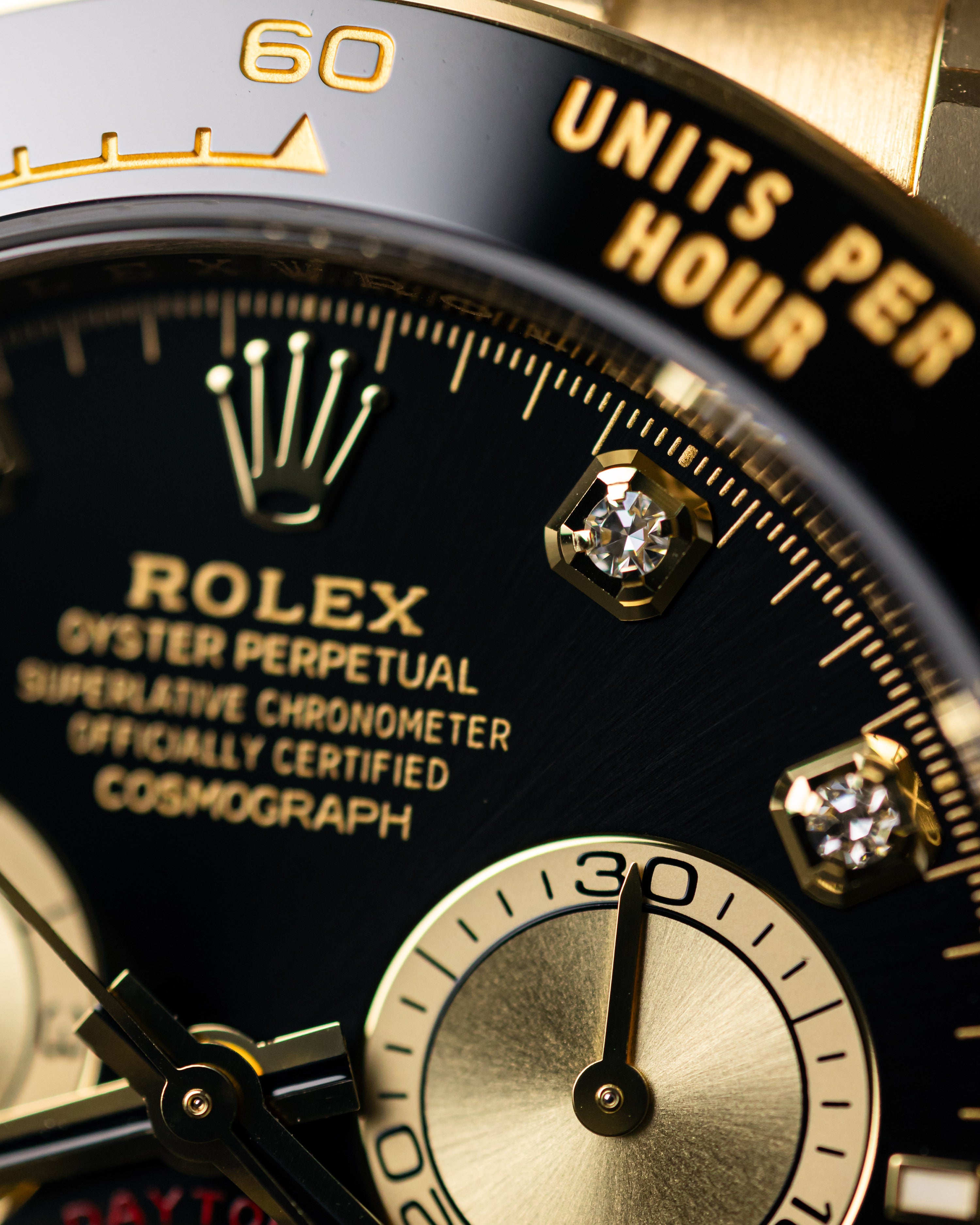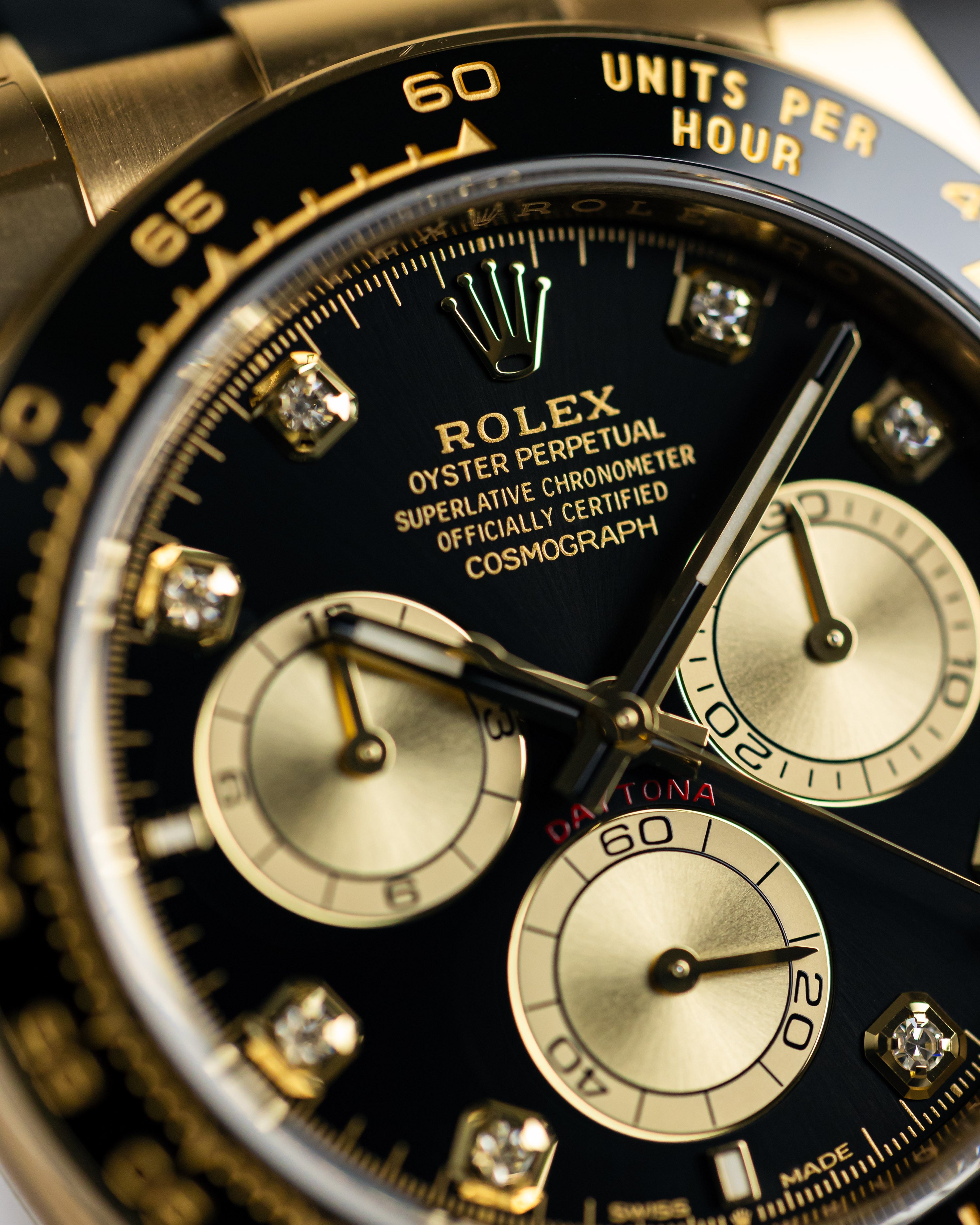 With the warm sunny days slowly approaching, this could be the perfect summers watch! The diamond hour markers pops against the bright black dial, complimenting the yellow gold case and subdials.
