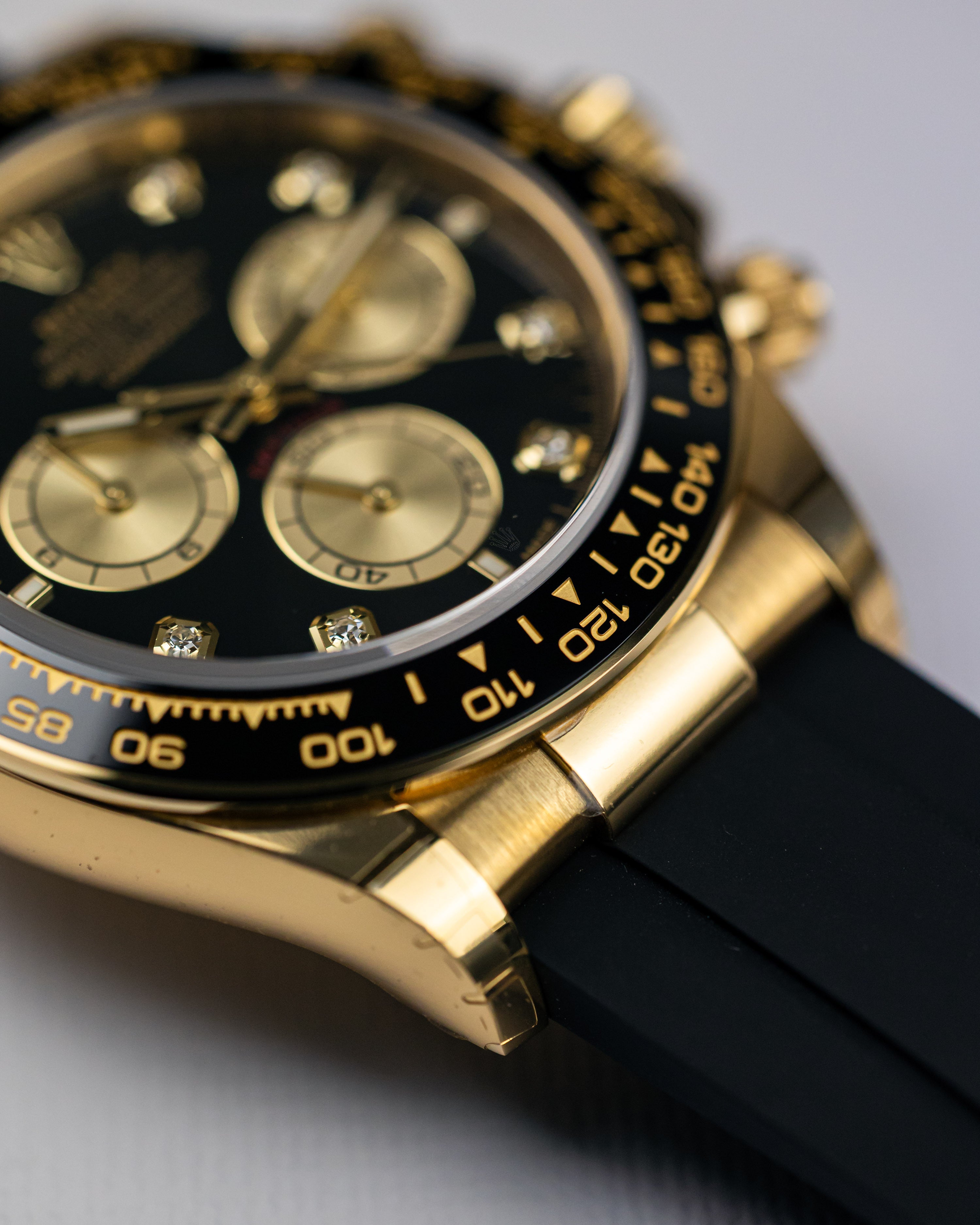 The Rolex logo is laser engraved on the Rehaut ring, perfectly aligned. In addition, the Rolex crown logo is located at 6 o’clock on the sapphire crystal.